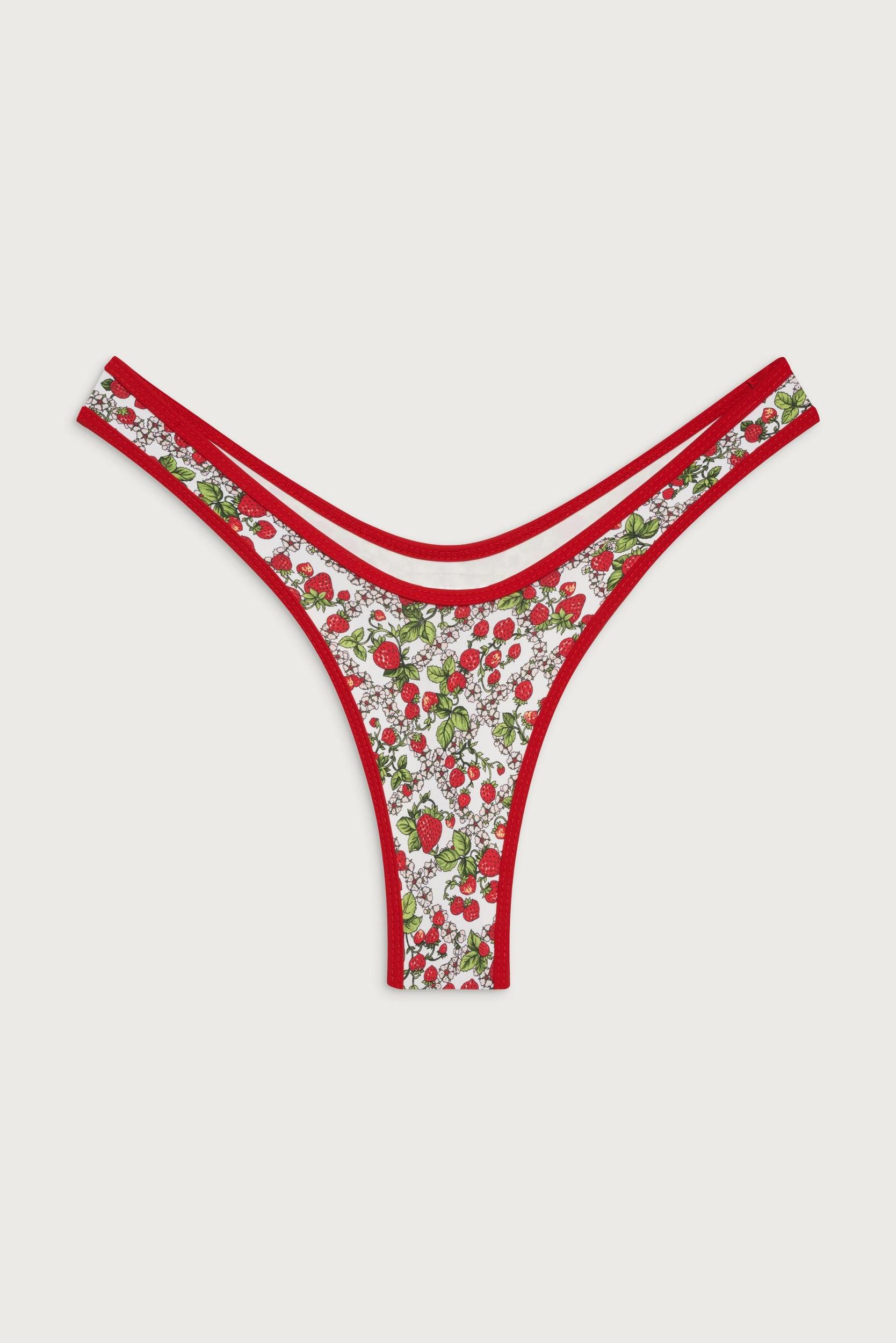 Our best-selling micro bikini bottom is back. Designed with a high leg cut and a sweet strawberry print, the Full Moon bikini bottom will be your go-to vintage inspired silhouette. Pair Full Moon with the matching Cola bikini top as the perfect travel set. Fabric 80% Nylon + 20% Spandex Flat Swim Micro Coverage Model Size & Fit This style runs true to size Bregje is wearing a size Small Height 5’9” (176m) Bust 33” (84cm), Waist 26" (66cm), Hips 37" (94cm)
