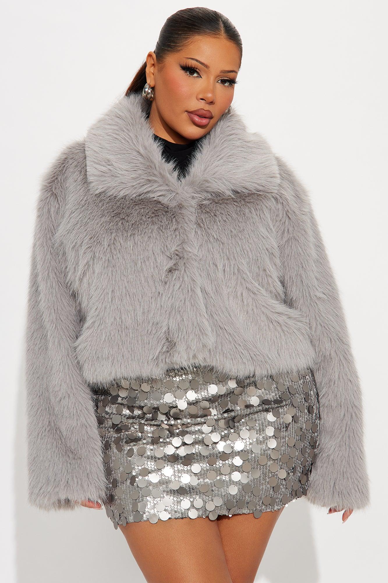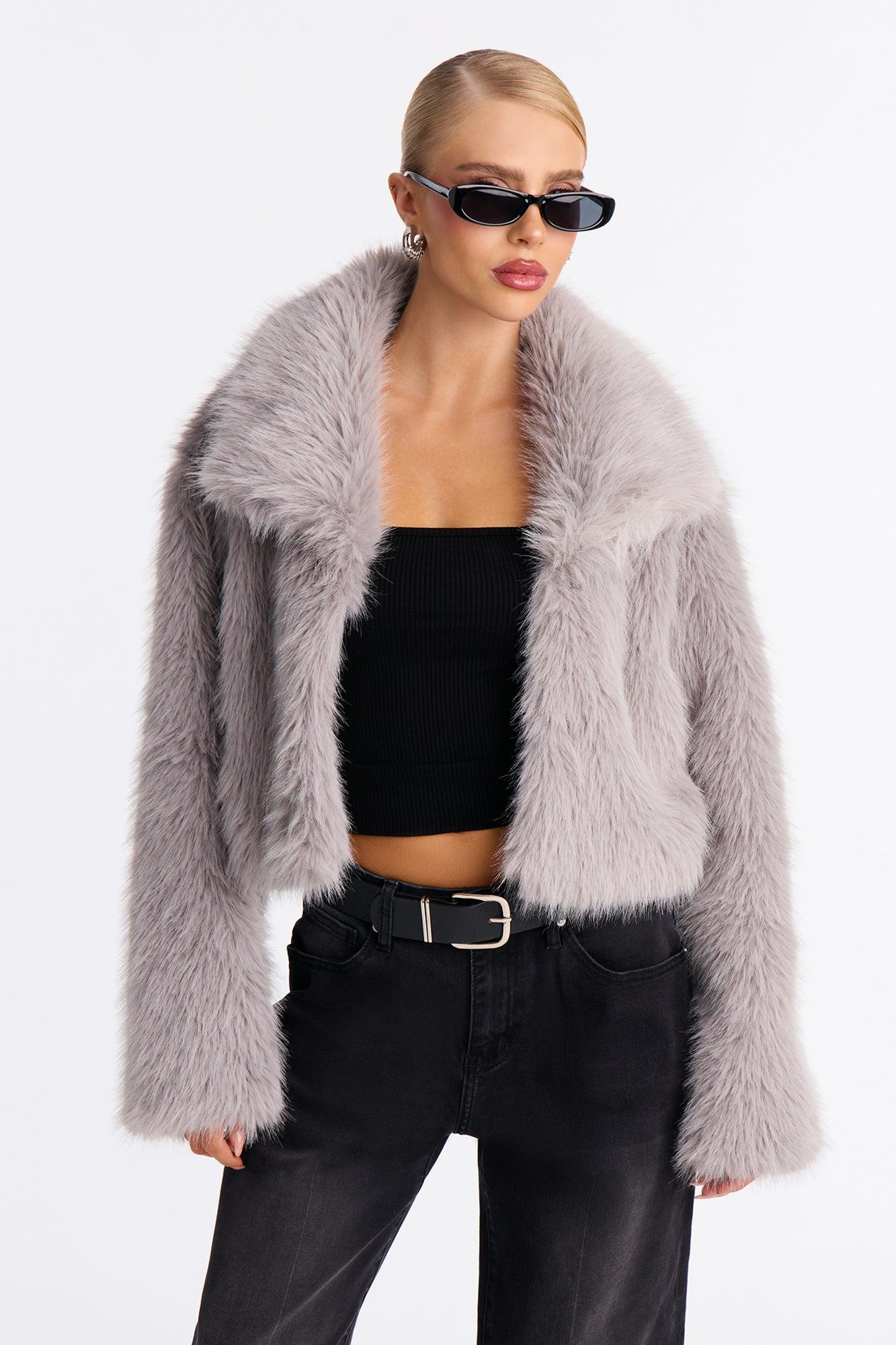 Full Of Charisma Faux Fur Cropped Coat - Light Grey Female