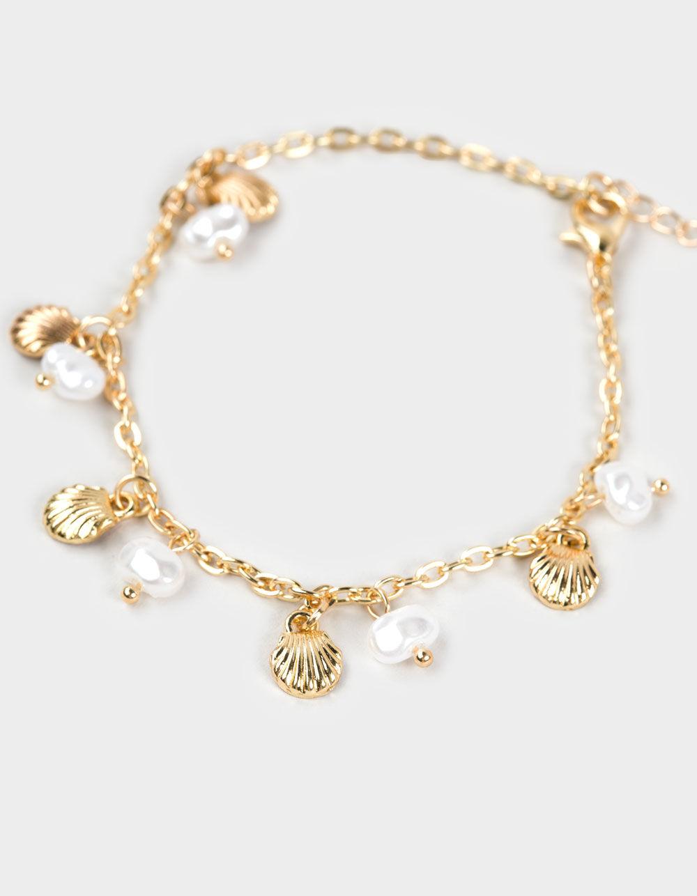 FULL TILT 2 Pack Pearl/Sea Shell Bracelets - GOLD