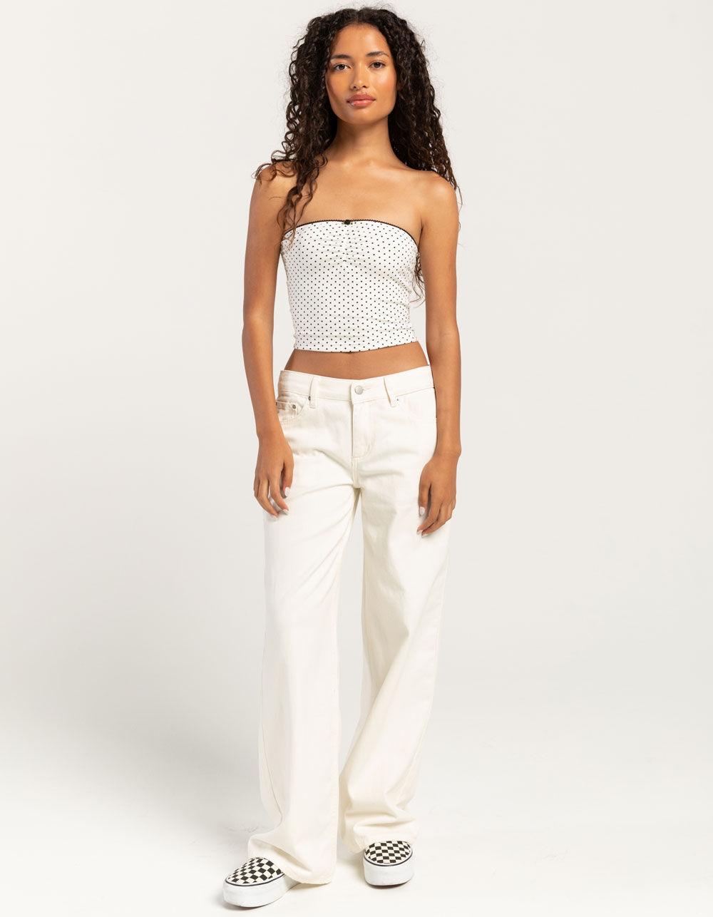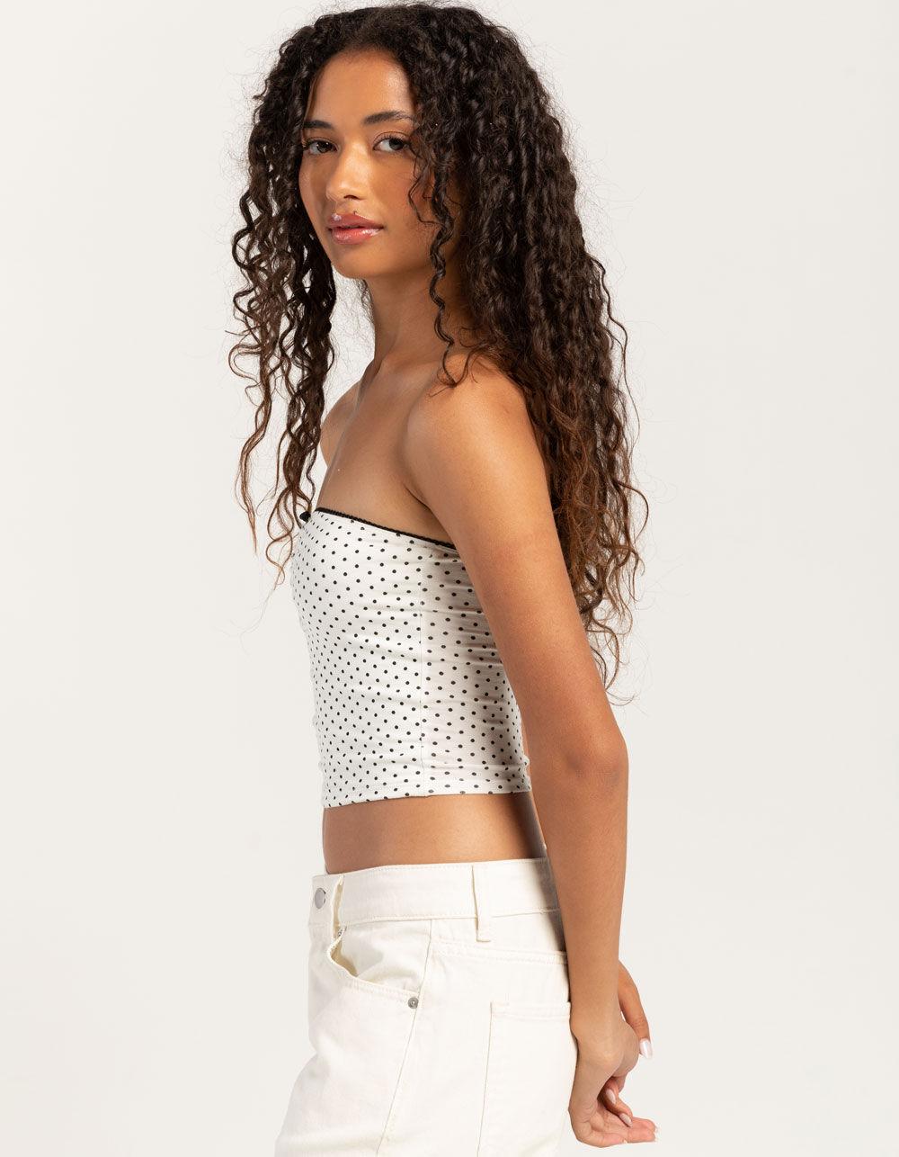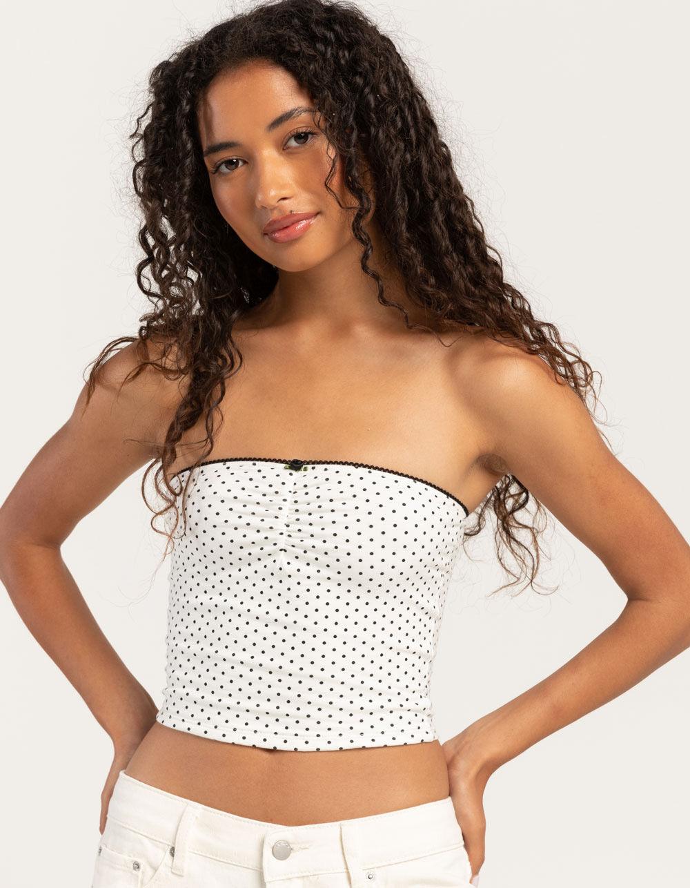 FULL TILT Dot Print Womens Cinch Tube Top - WHT/BLK