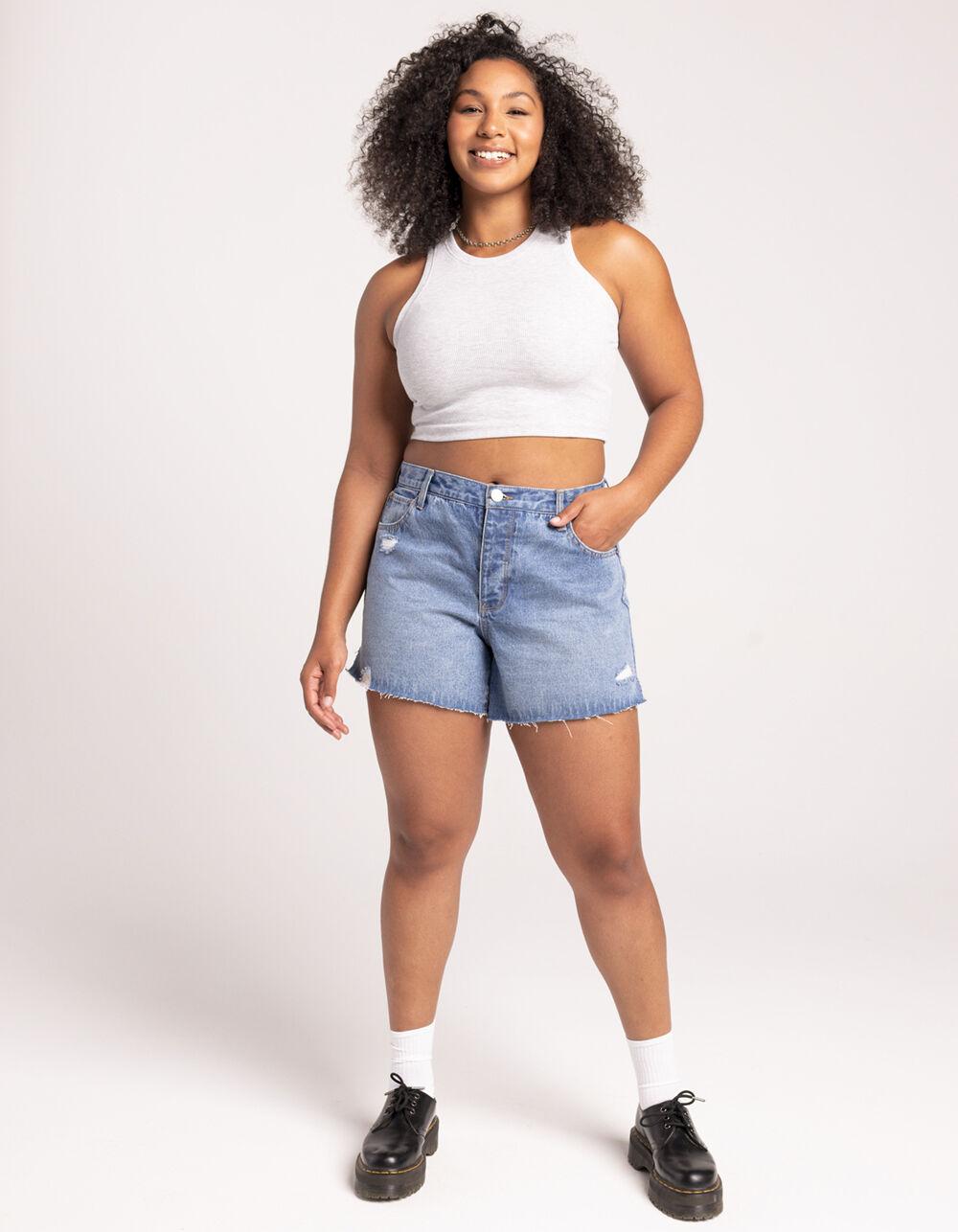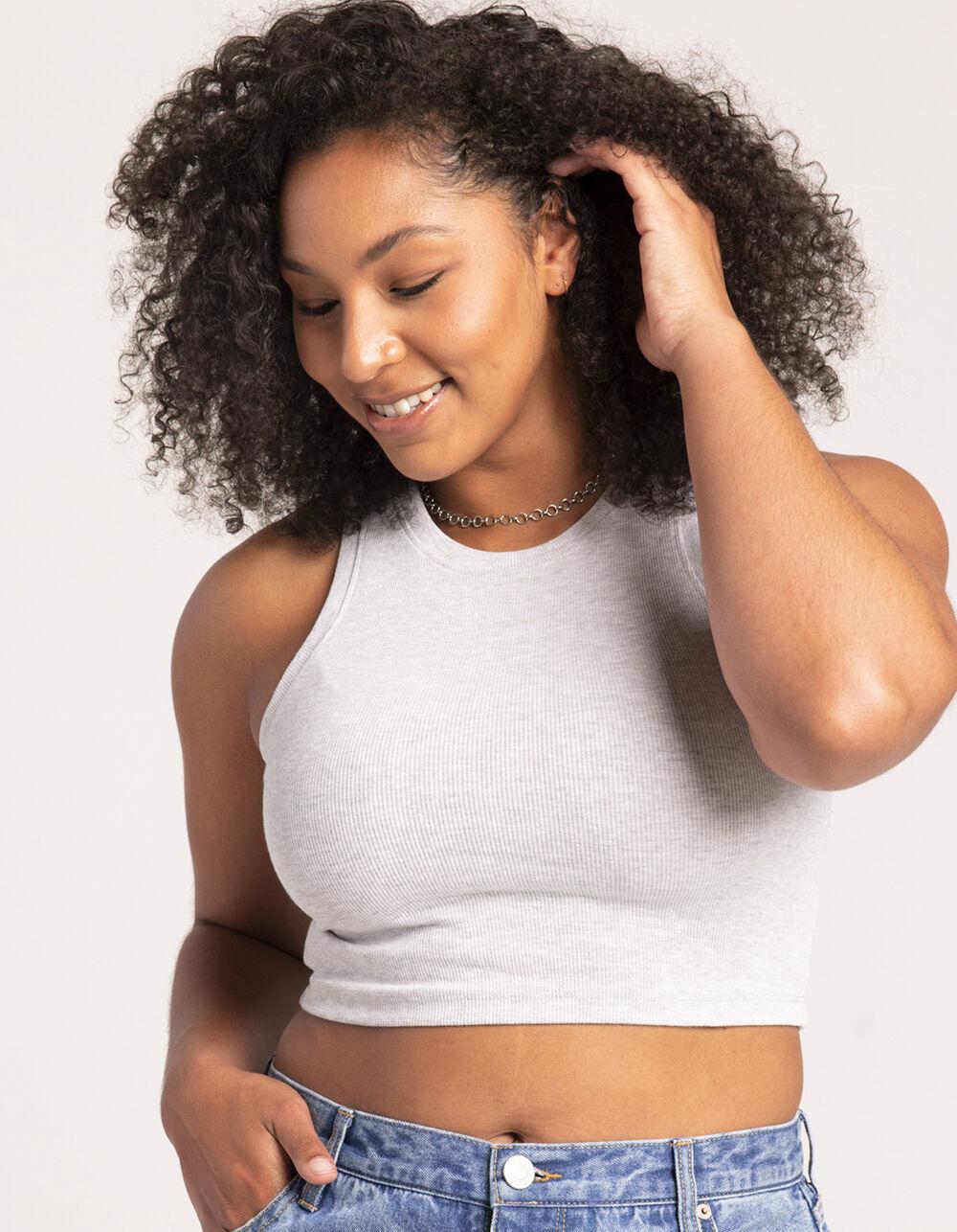 HEATHER GRAY. Full Tilt High Neck Tank. Solid cotton blend tank top with stretch. Ribbed knit construction. High neckline. Sleeveless. Fitted, crop silhouette. 57% cotton/38% polyester/5% spandex. Hand wash. Imported.