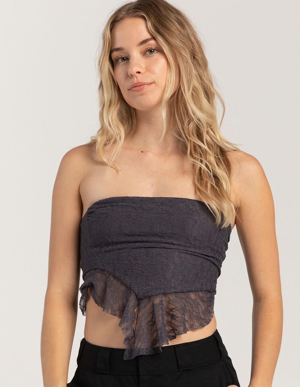 FULL TILT Lace Ruffle Womens Tube Top - GRAY
