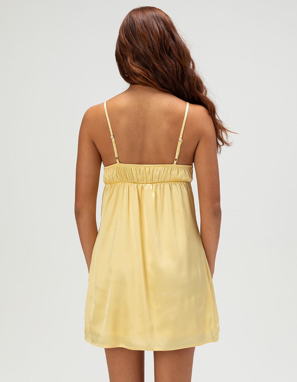 Full Tilt Satin Slip Dress. Turn up the charm with the Full Tilt Satin Slip Dress, a sleek and feminine piece perfect for day or night. Crafted from a silky polyester-spandex blend, this sleeveless slip dress features delicate lace trim along the neckline and chest for a romantic touch, while three decorative buttons at the center chest add vintage-inspired detail. Adjustable shoulder straps ensure a customizable fit, and the fully lined interior offers comfort and coverage. Whether styled on its own or layered under a jacket, this satin slip dress brings effortless elegance to any look. 95% Polyester 5% Spandex. Lining: 100% Polyester. Hand wash. Imported.