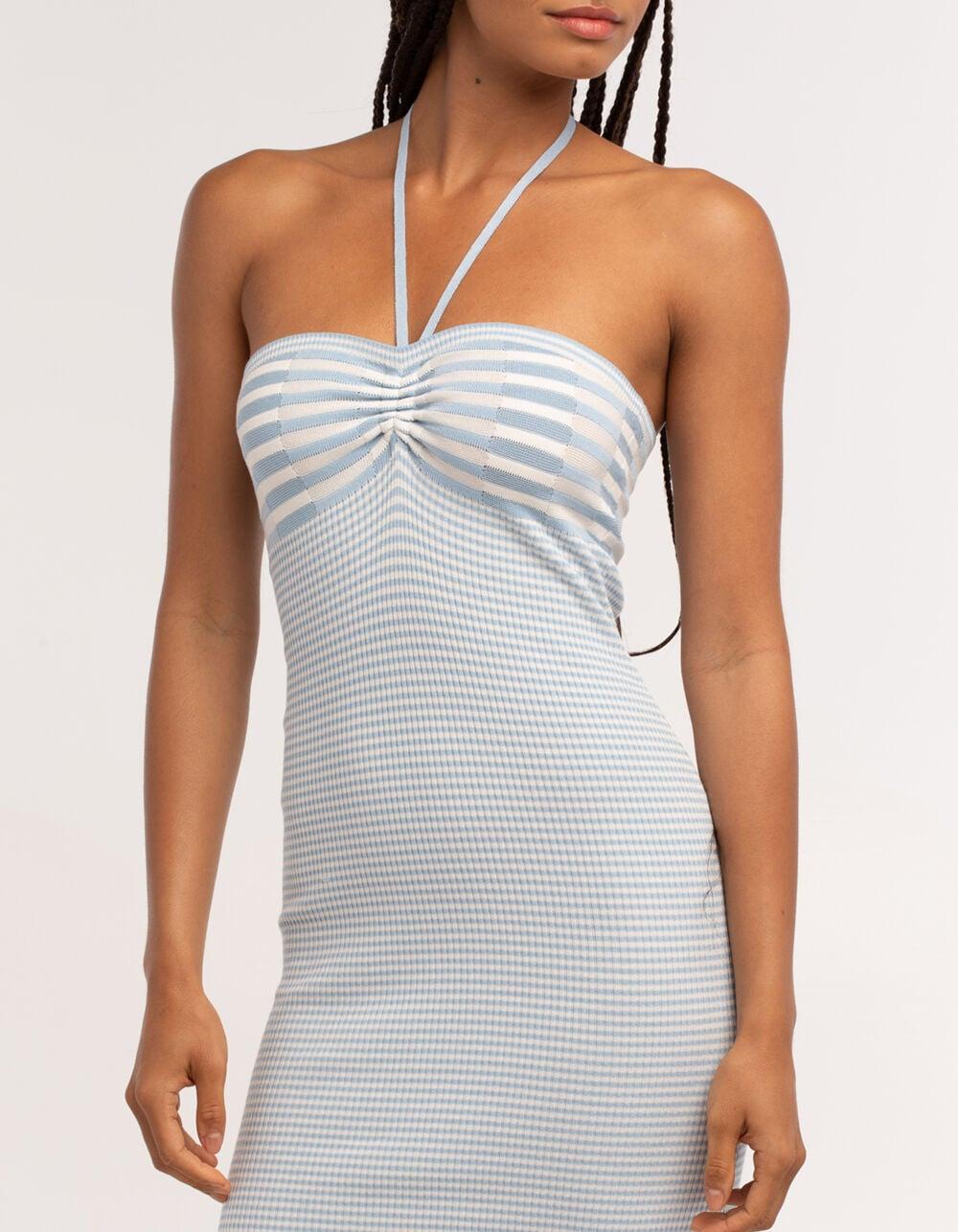 FULL TILT Stripe Sweater Knit Halter Dress - LIGHT BLUE