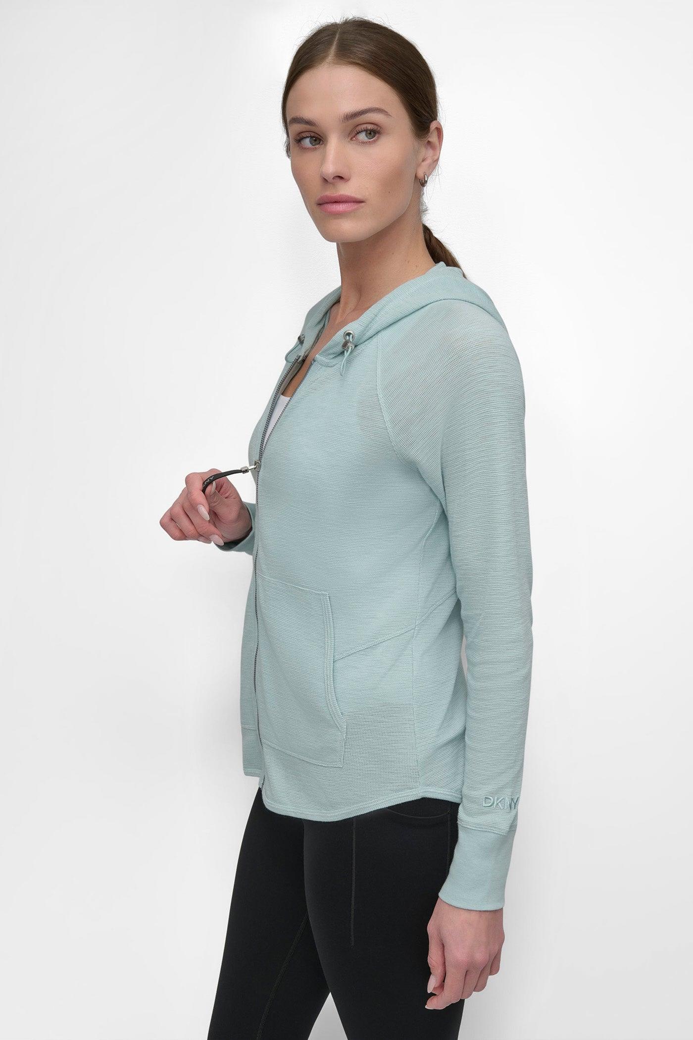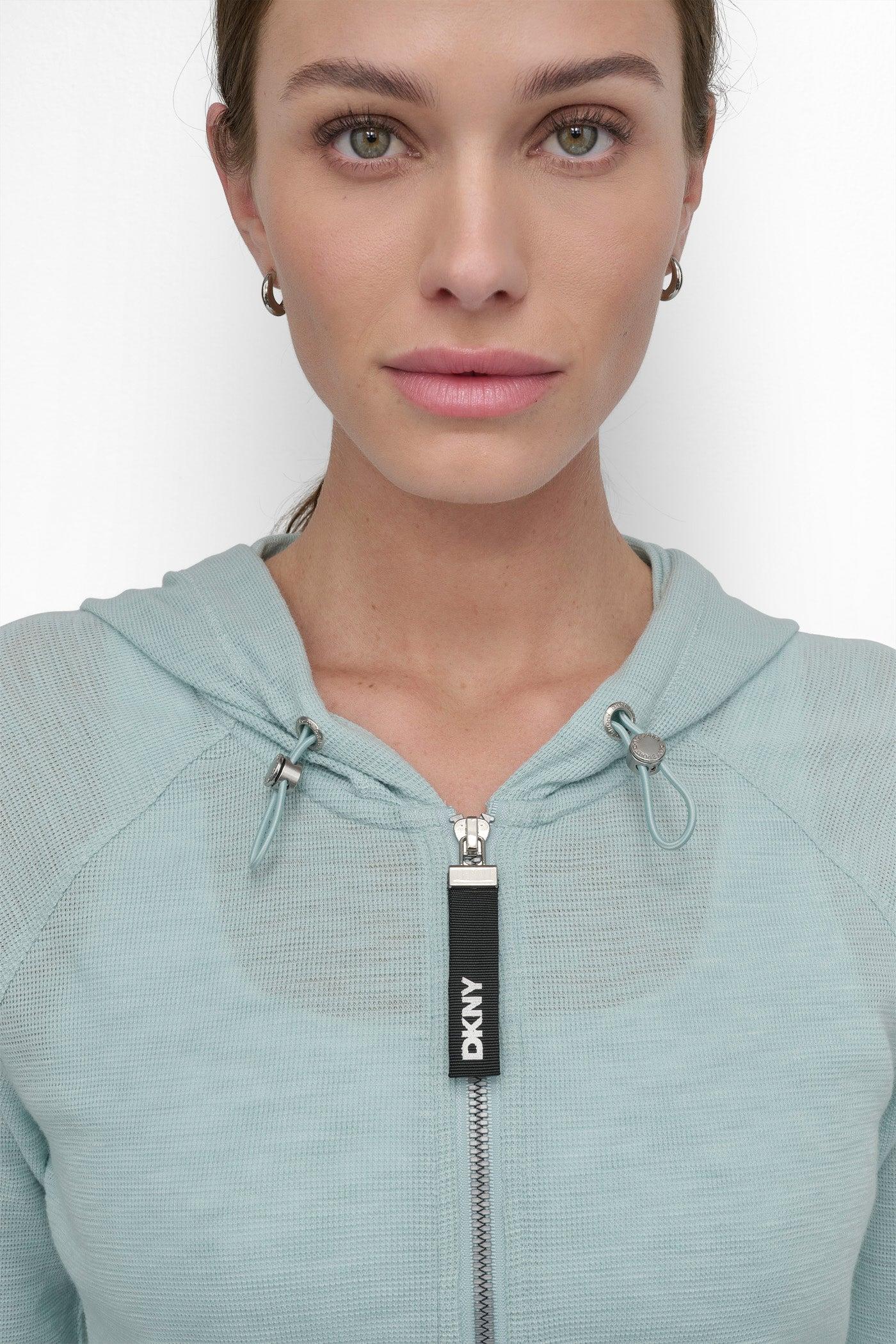 FULL ZIP MINI SLUB WAFFLE HOODIE WITH POCKETS