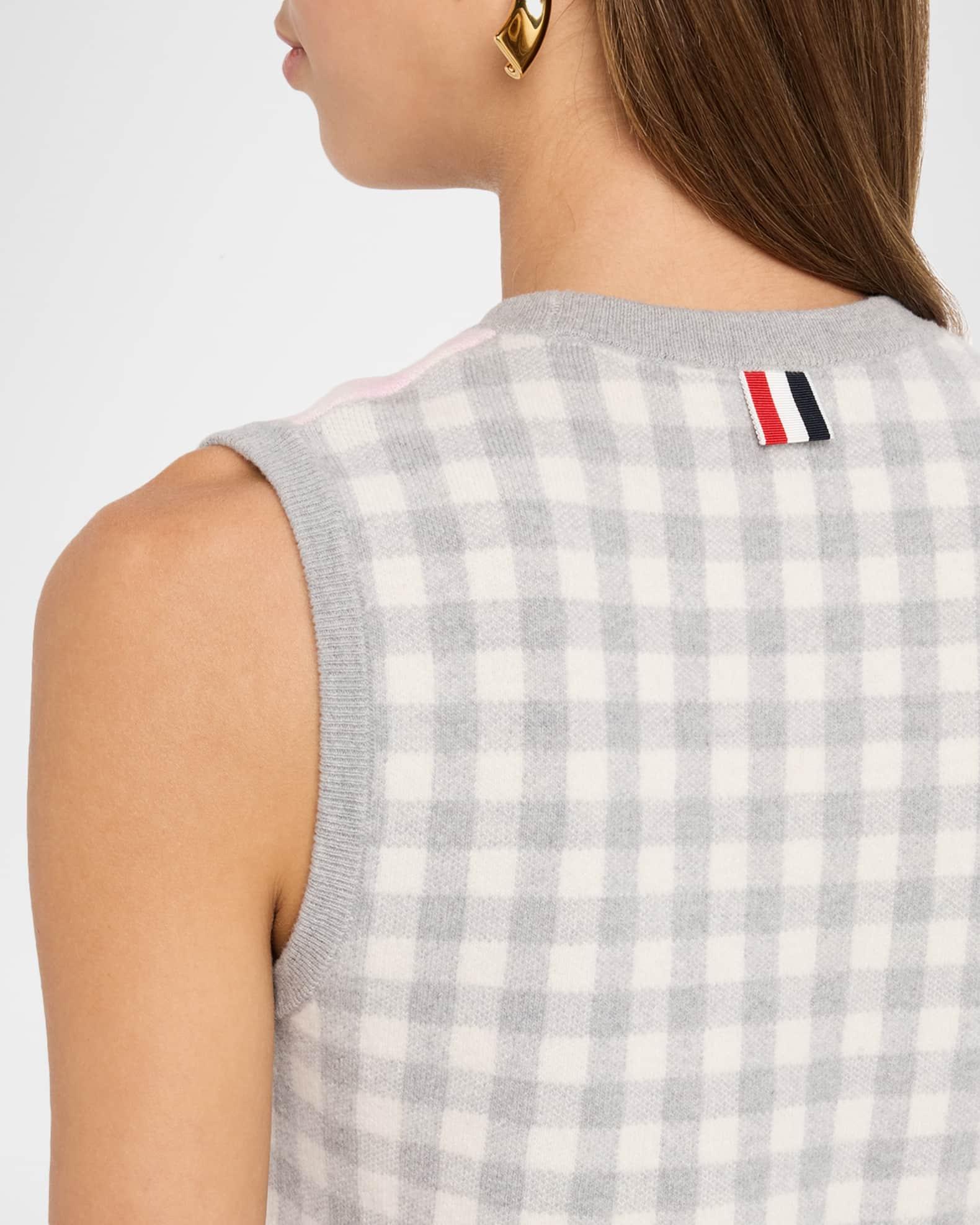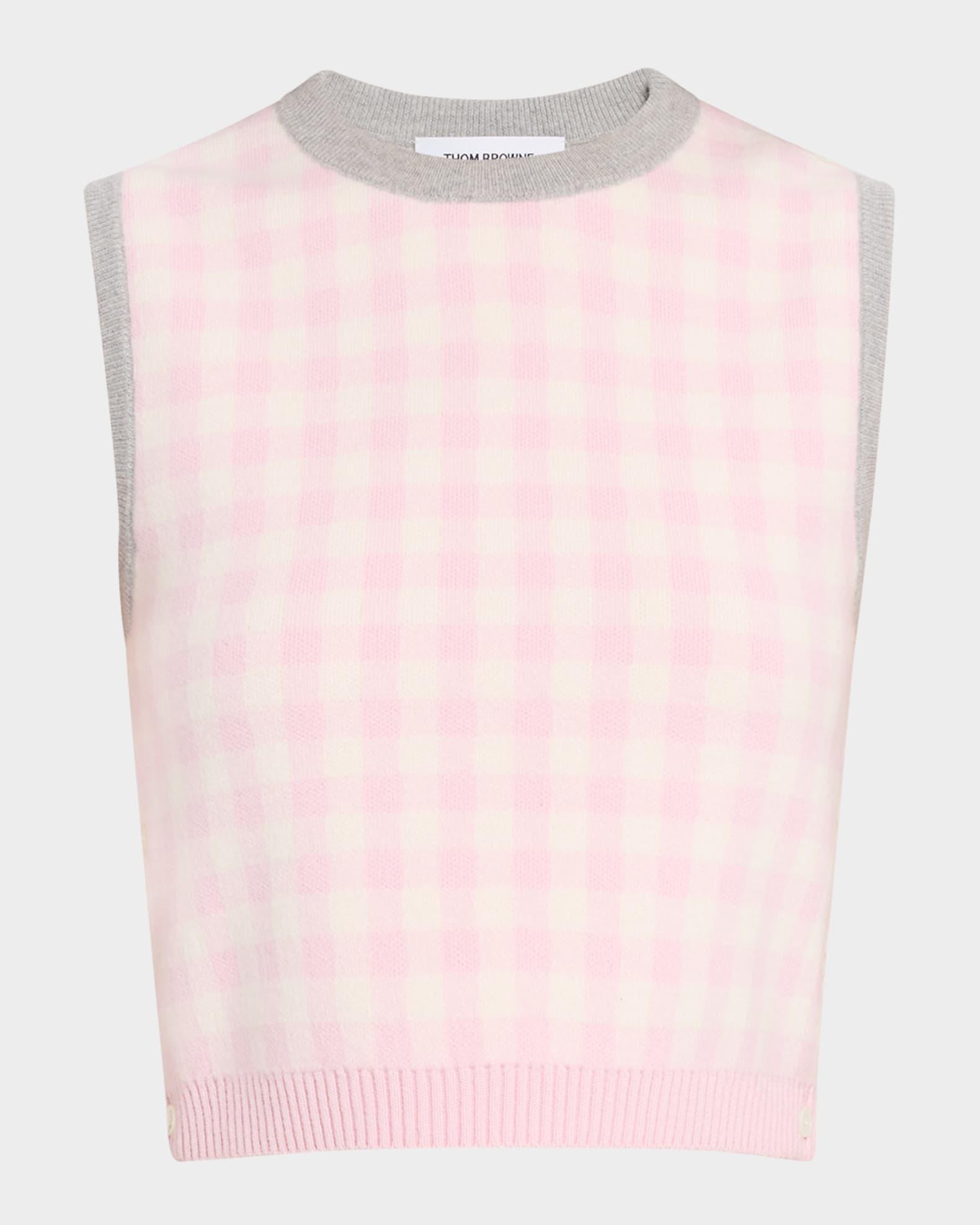 Fun Mix Gingham Check Jacquard Crop Tank Sweater