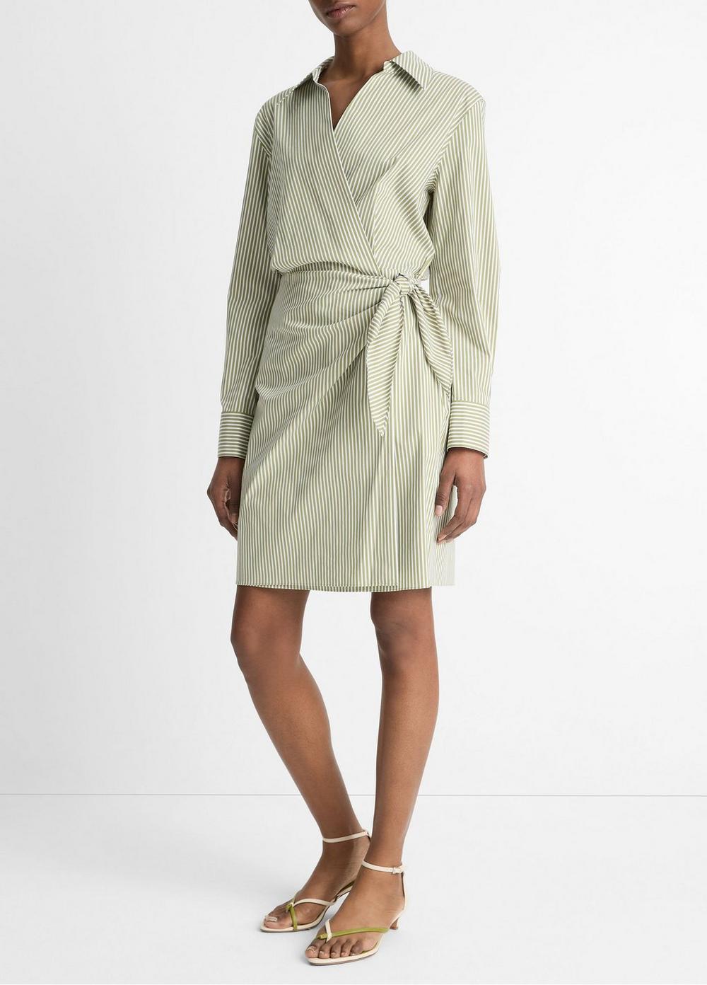 Furrow Stripe Cotton-Blend Wrap Dress