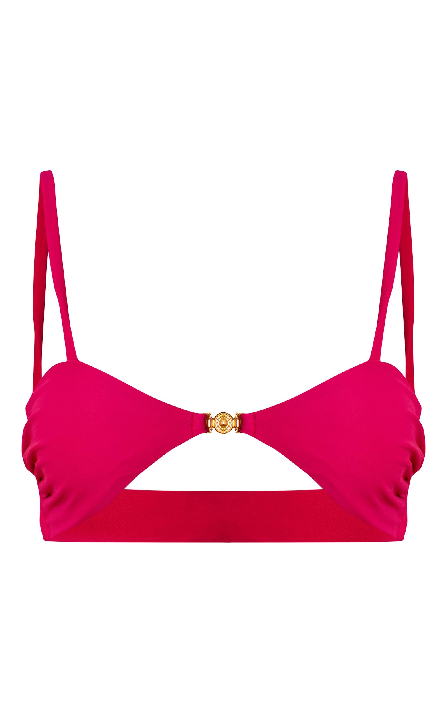 Sleek and sultry, the fuschia gold trim micro bikini top is designed for sun-worshippers who love a refined edge. With delicate gold trim and a minimalist cut, this piece offers a high-fashion feel with just the right amount of exposure. Complete your beach look with the coordinating thong bikini bottoms and a fluid sarong for a chic, effortless aesthetic.Length approx 29cm/11.5inch (Based on sample size US 4)Model wears size UK 8/ EU 36/ AUS 8/ US 4Model Height - 5ft 7inchp]:!mb-4inch>Brand: PrettyLittleThingCategory: SwimwearProduct type: Triangle Bikini TopColor: FuschiaMaterial: SwimOccasion: Day