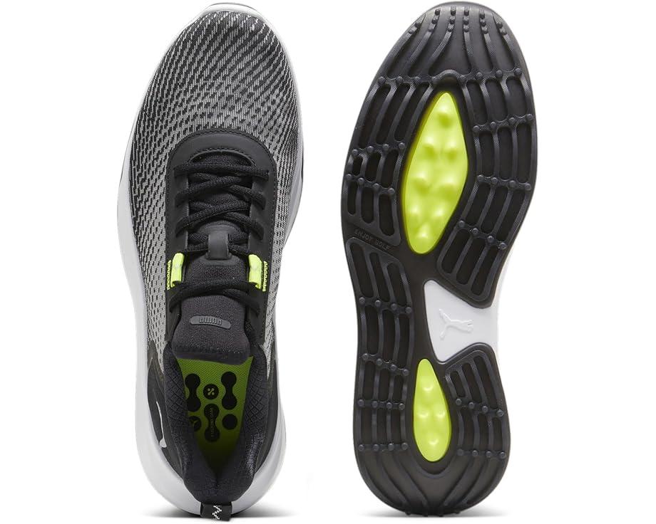 Give your steps a new speed wearing PUMA® Golf Fusion Crush Sport shoes. They feature 1 Year WP full-grain leather upper, textile lining, and textile + PU removable insole. A round toe, lace closure, and heel pull-tabs ensures easy on and off while signature cat on the back counter makes it stylish in look.