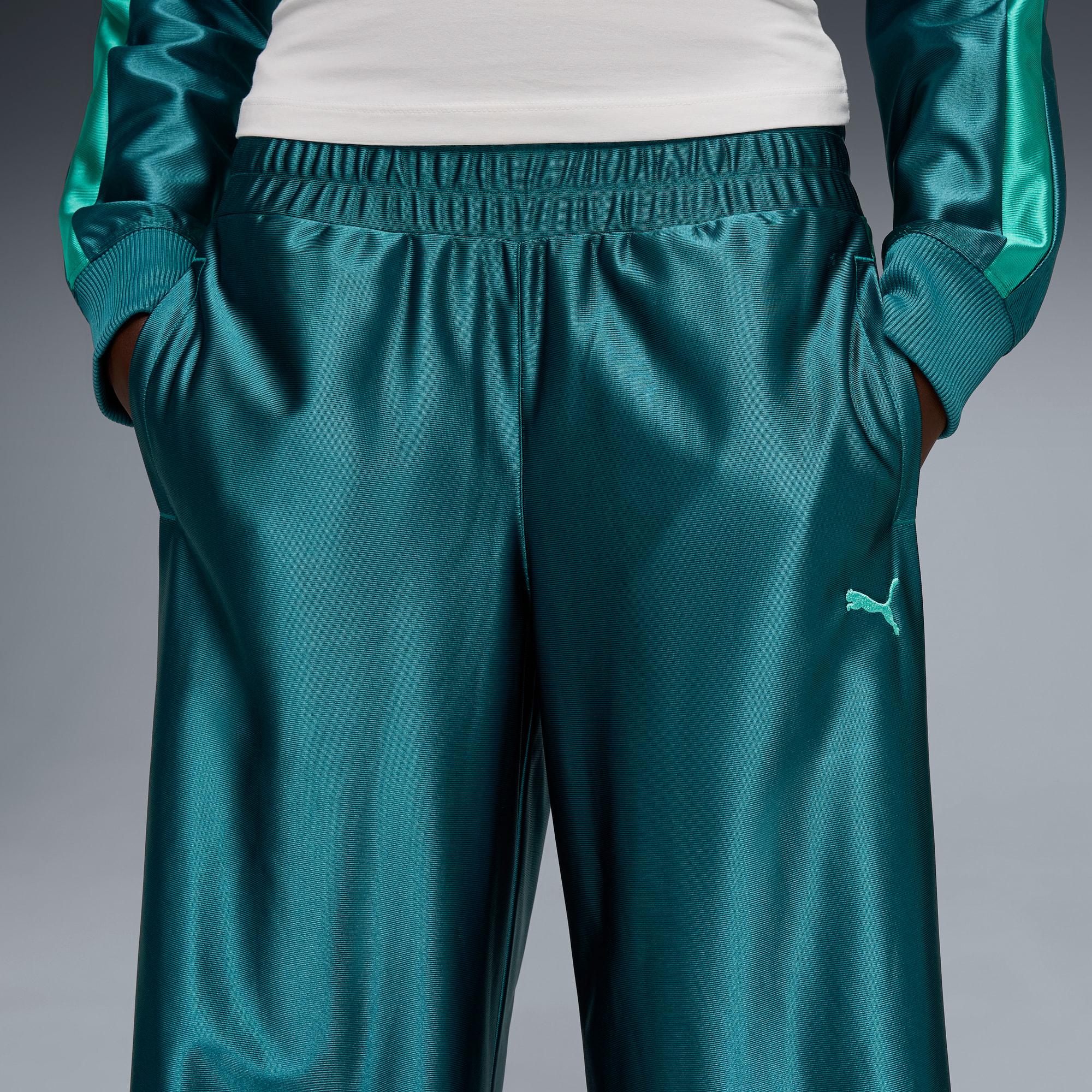 descriptionThis is the FUTURE.PUMA.ARCHIVE. This street inspired collection merges the essence of our past with the boundless edges of our future. Retro, yet progressive, these pants are here to make a statement.Style: 634593_41Color: Emerald Icemeasure & sizeModel informationModel is 5' 9" tall and is wearing size S.features & benefitsMOISTURE MANAGEMENT: Technical dryCELL fabrics wick moisture away from the skin to help keep you dry and comfortableMade with 100% recycled material excluding trims & decorations.detailsFit: RelaxedMain material type: TricotLength: RegularRise: MediumSignature PUMA T7 stripesPUMA Cat logomaterials & careMaterial informationShell: 100% polyesterPocket Bag: 100% polyesterCare instructionsUse only mild detergentWash and iron inside outWash separatelyExclusive of DecorationDo not iron printWash garment in a washing bag