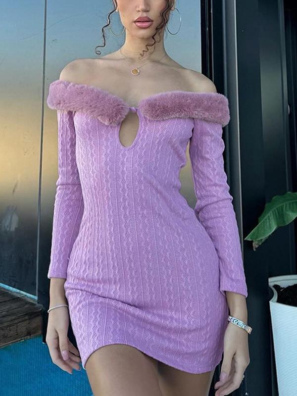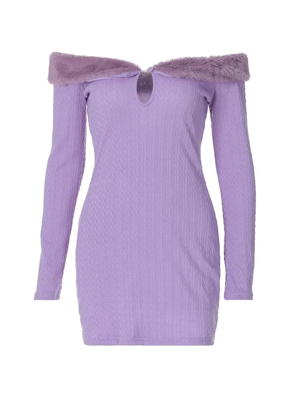 Fuzzy Collar Off Shoulder Mini Dress