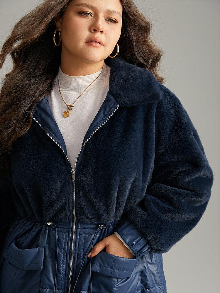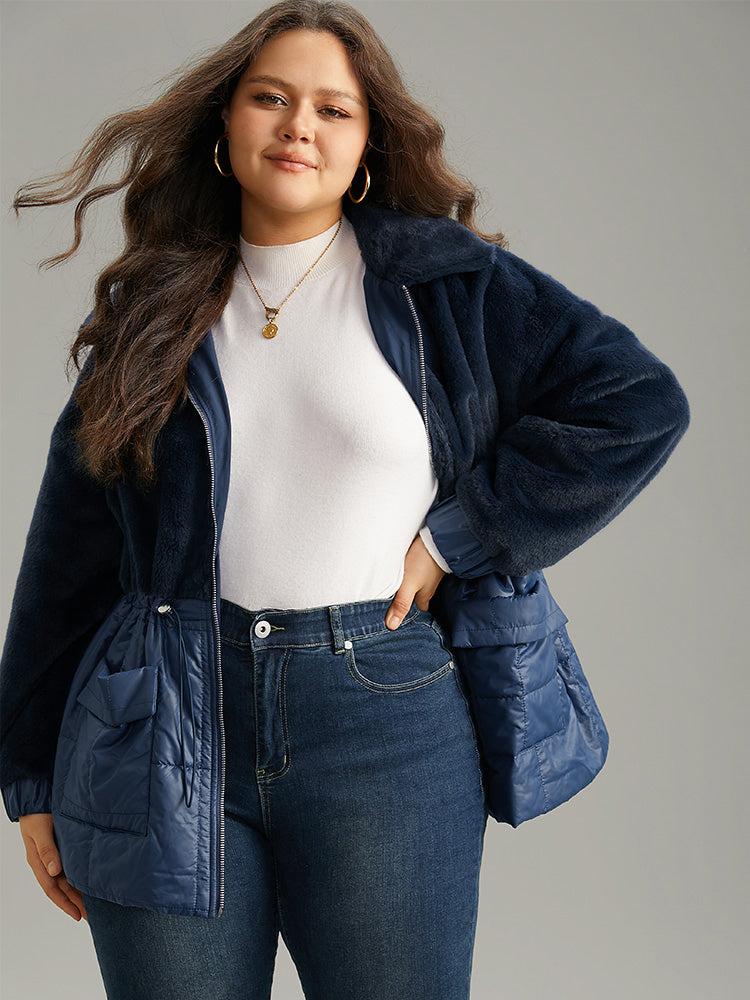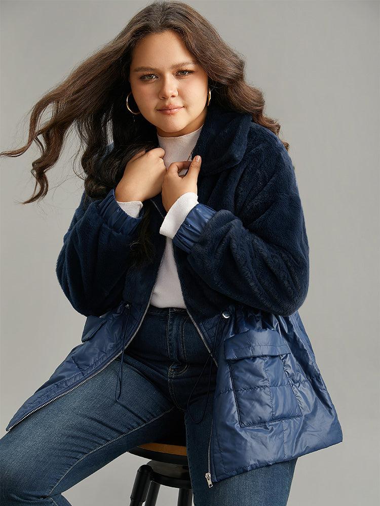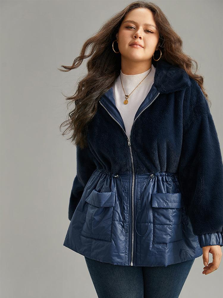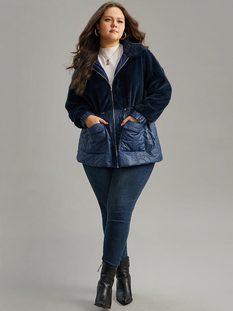 Shop Fuzzy Patchwork Zipper Drawstring Coat now and redefine your style with confidence at BloomChic. Tailored for mid and plus-size women. This trendy Outerwear Women, sizes 10-30. Season:Winter;Color:Indigo;Style:Casual;Pattern Type:Plain;Details:Pocket, Patchwork, Zipper, Plain;Pocket:It is perfectly sized to carry a phone.;Belt:No-belt;Closure Type:Zipper;Lining:No-lining