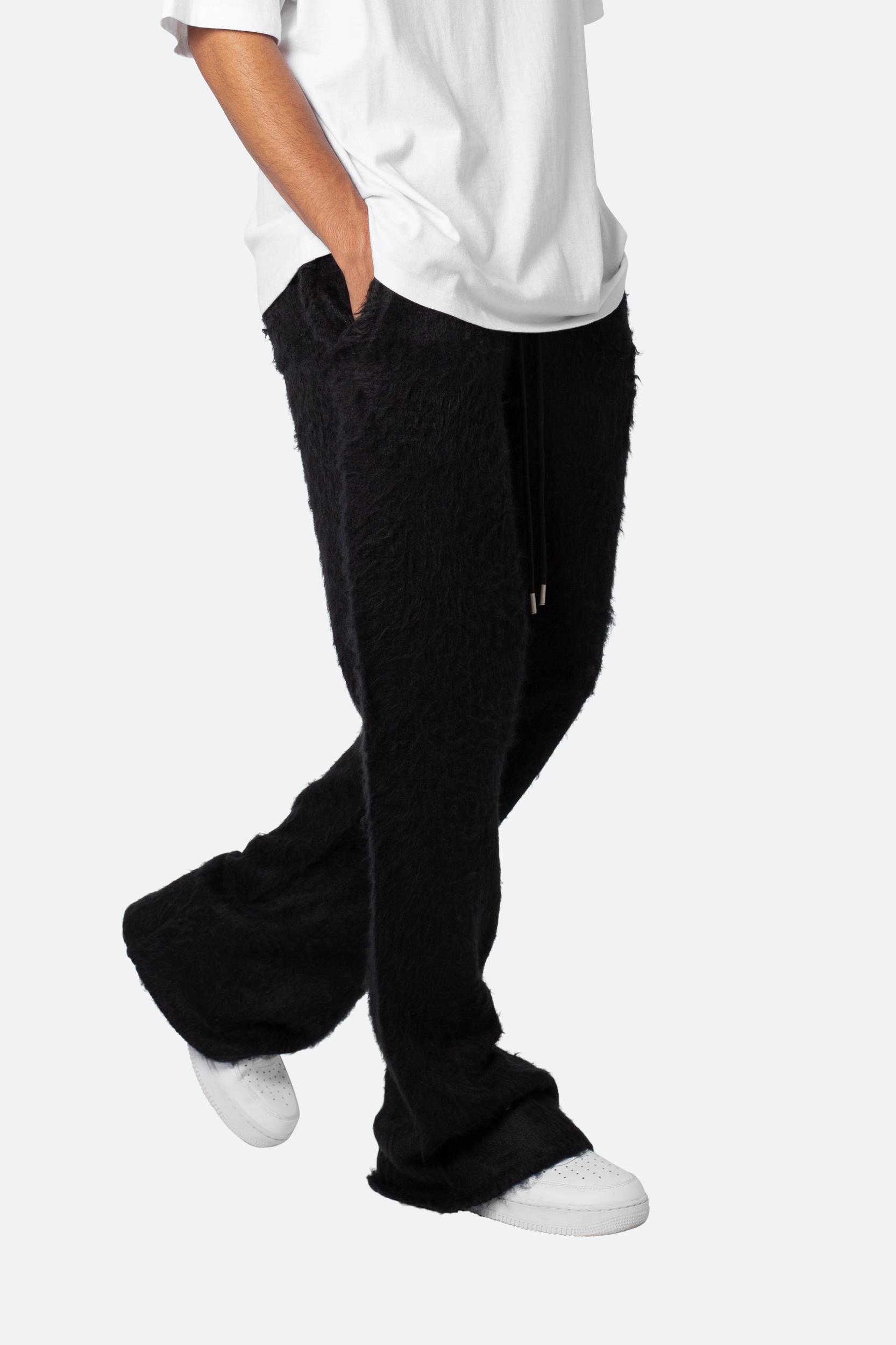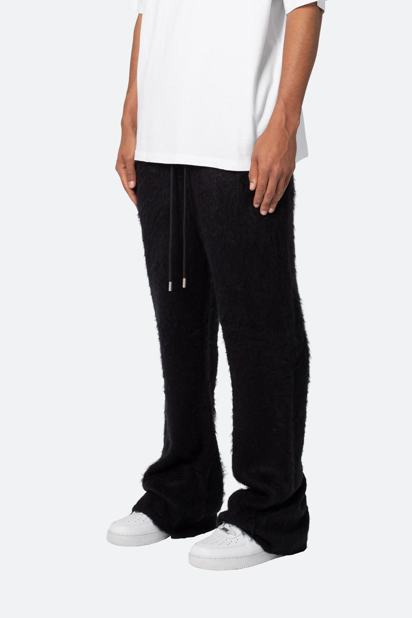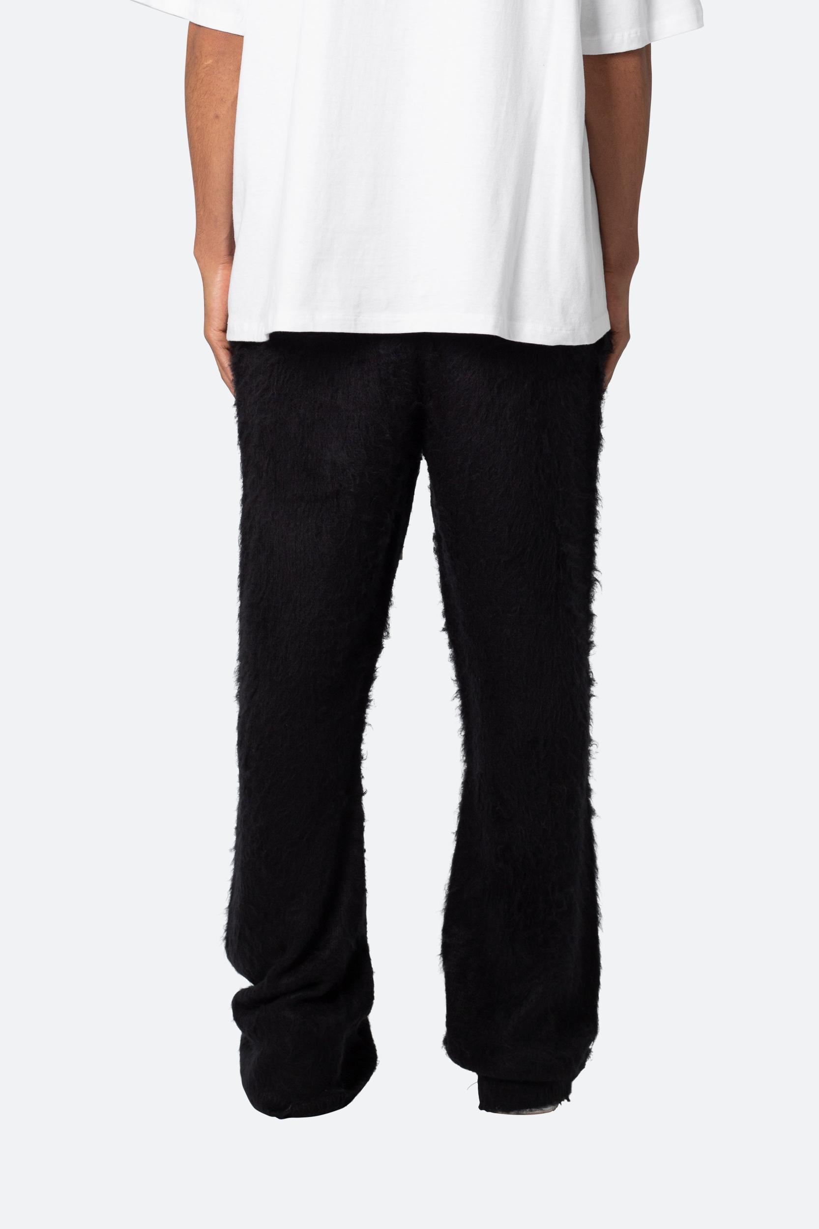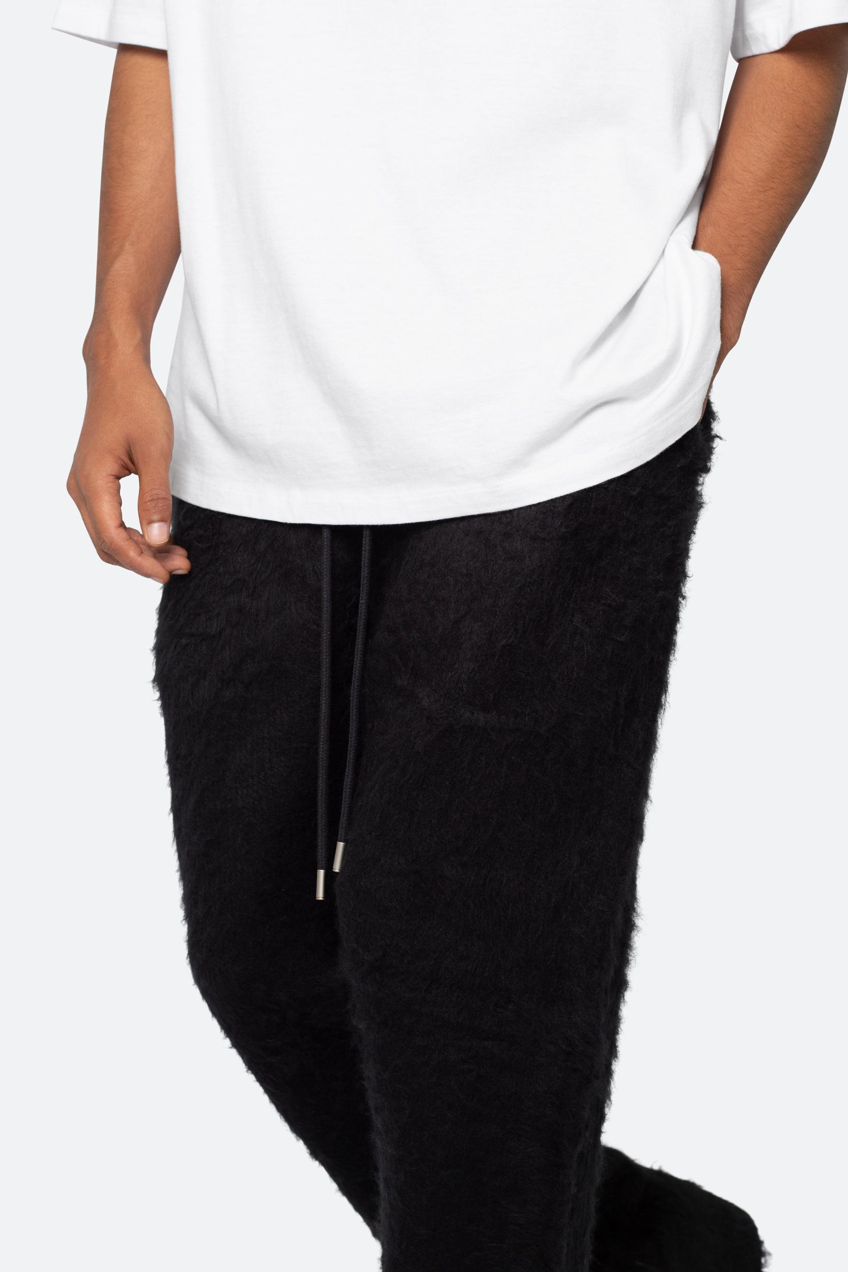 the Fuzzy Sweatpants are constructed in a a custom acrylic sweater knit. The pants feature an elasticized waist in self fabric, pockets at the outseam, a tonal drawstring, and is finished with brushing on the outside to provide a fuzzy texture. details elasticized self waist with drawstring relaxed fit 100% acrylic mod