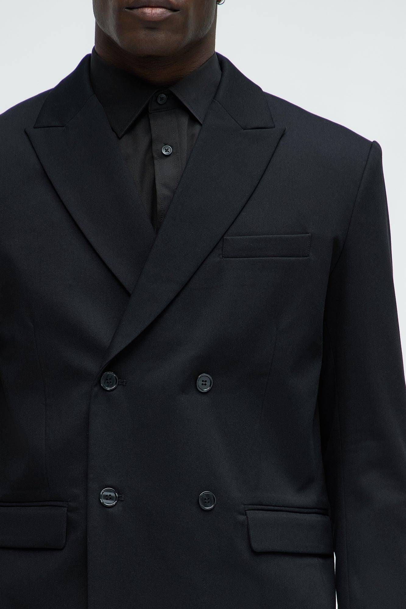 Gabardine Double Breasted Blazer - Black