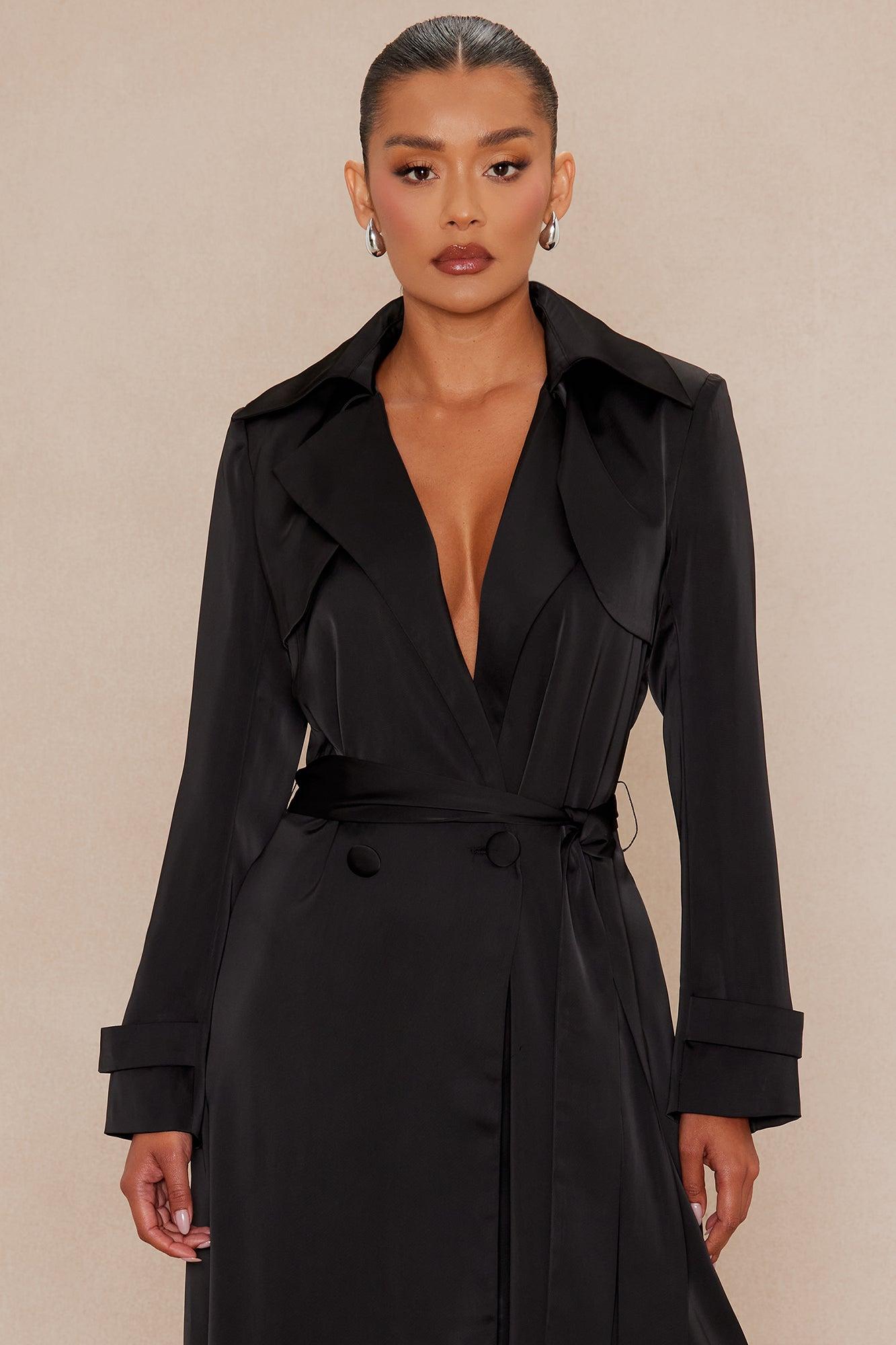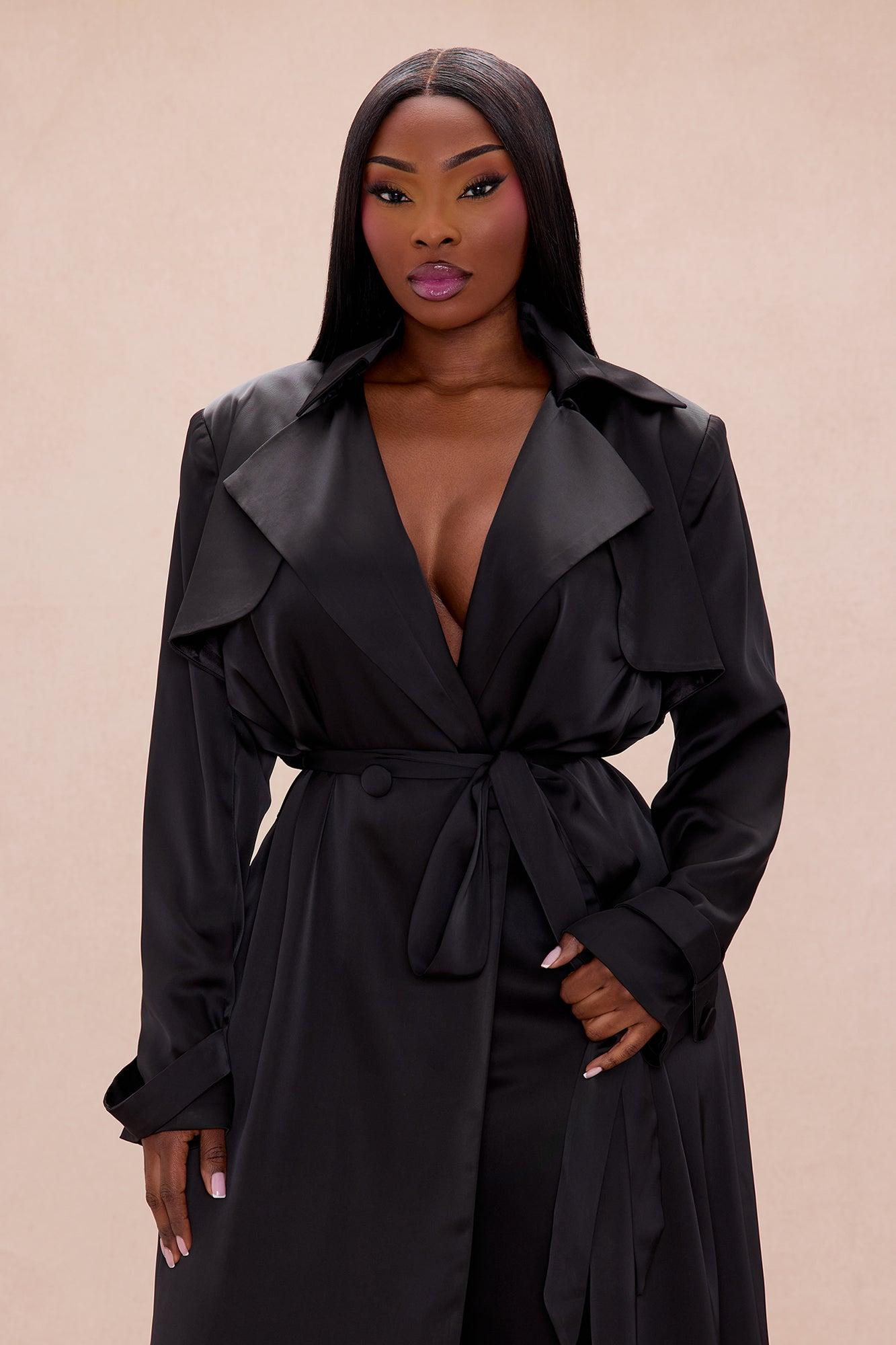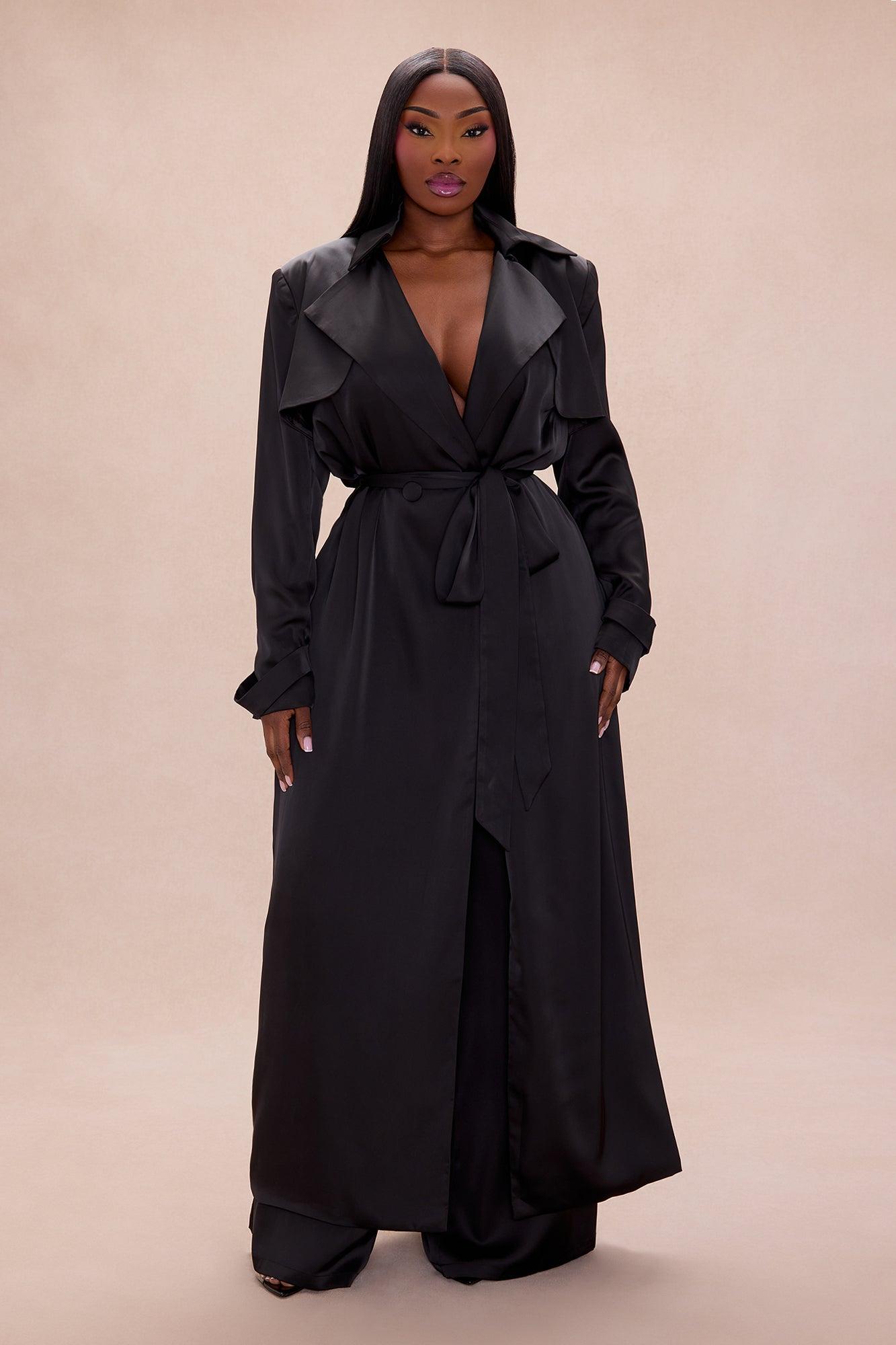 Gabriella Satin Trench Coat And Pant Set - Black Female Product Image