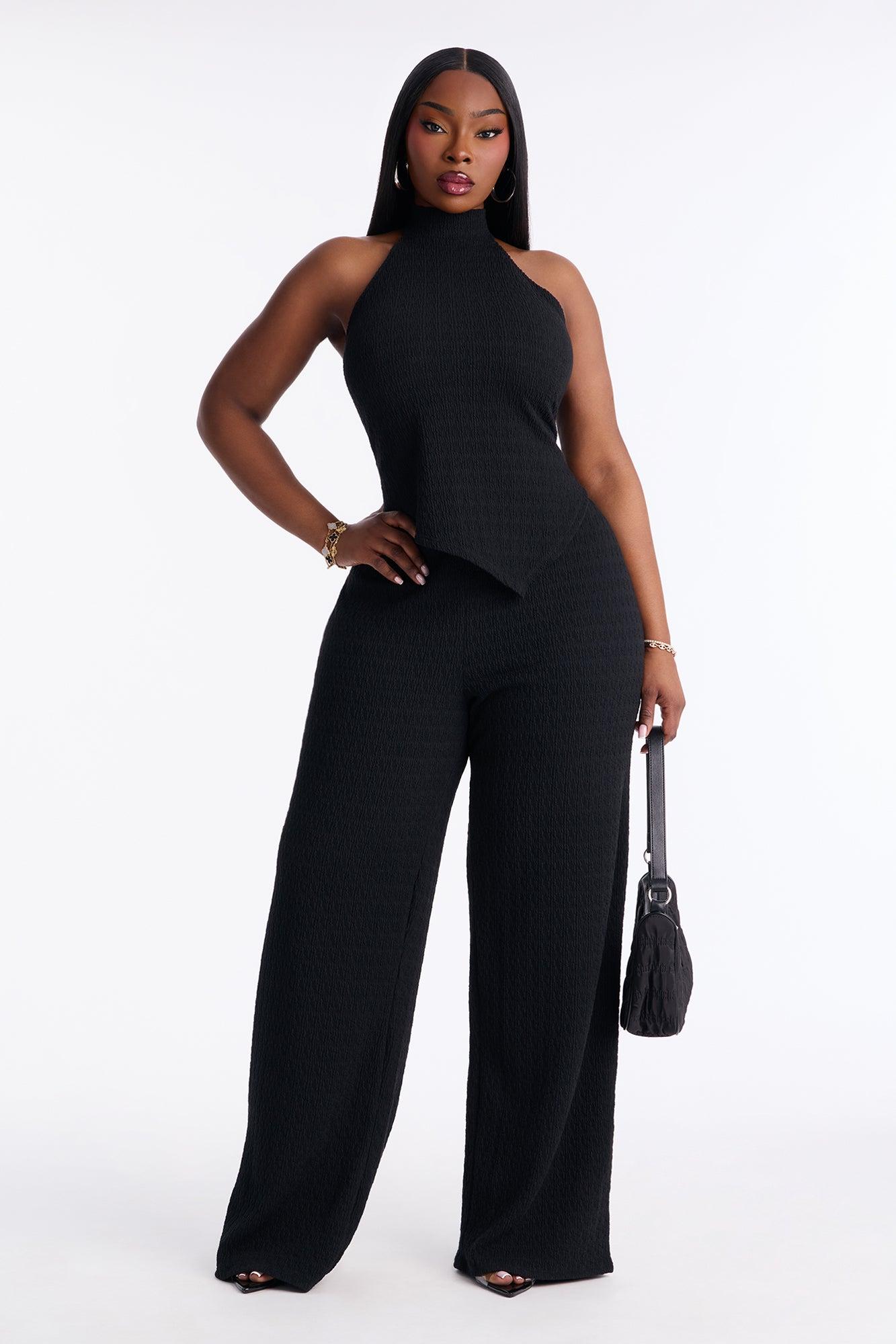 Gabriella Textured Asymmetrical Pant Set - Black Female
