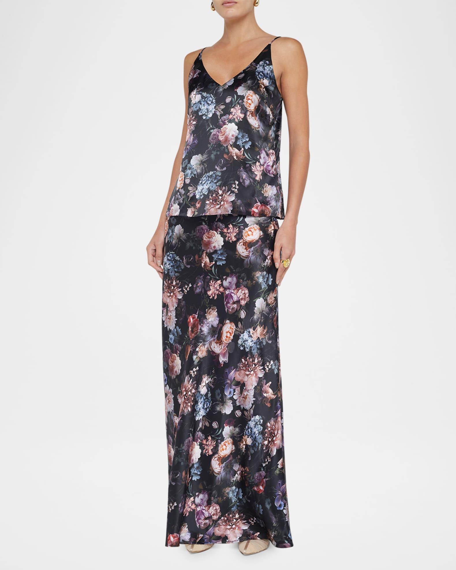L'Agence "Gabriella" floral-printed tank top V neckline Adjustable spaghetti straps Hip length Relaxed fit Slipover style Silk Dry clean Imported Model is 5'10"/177cm.