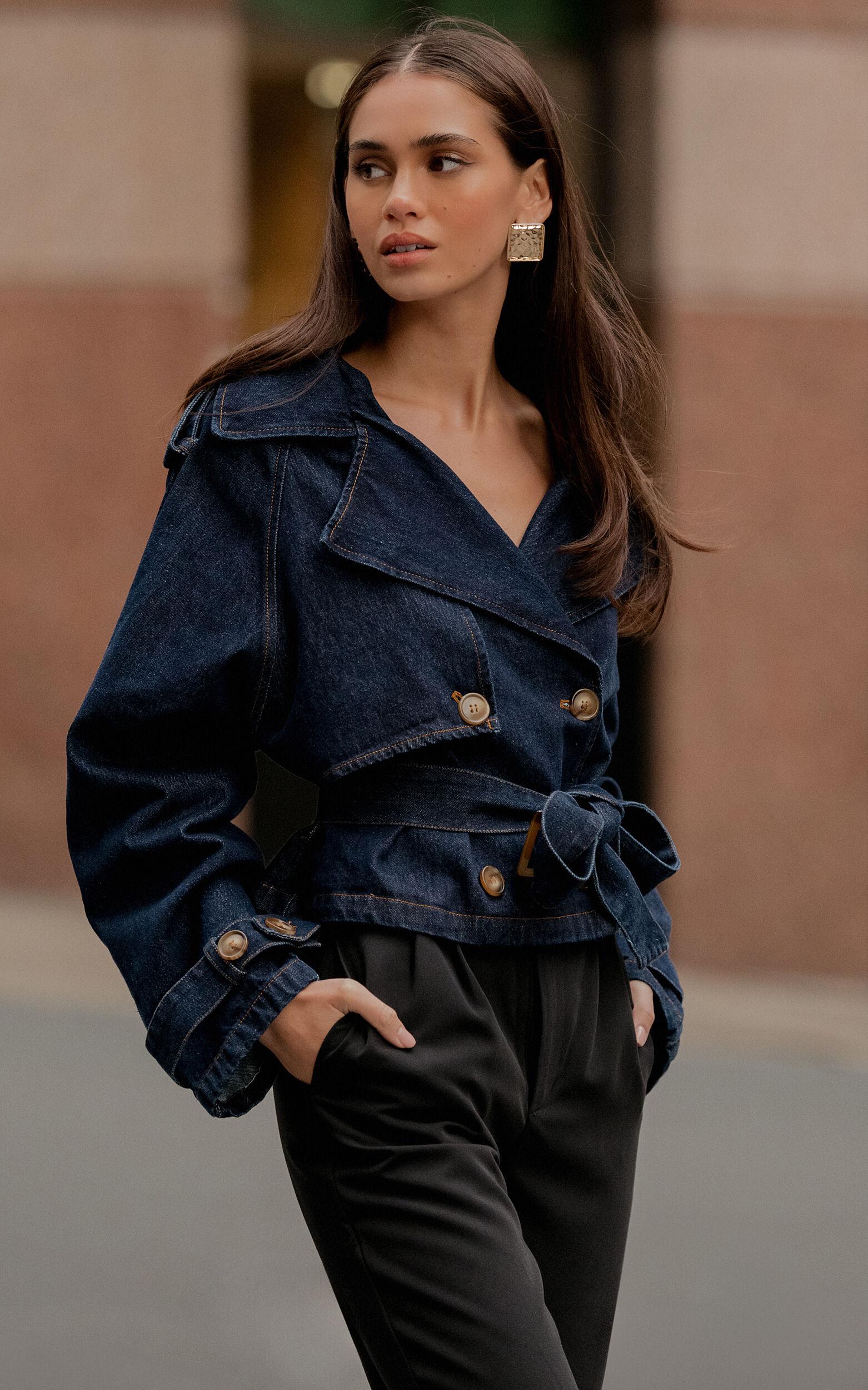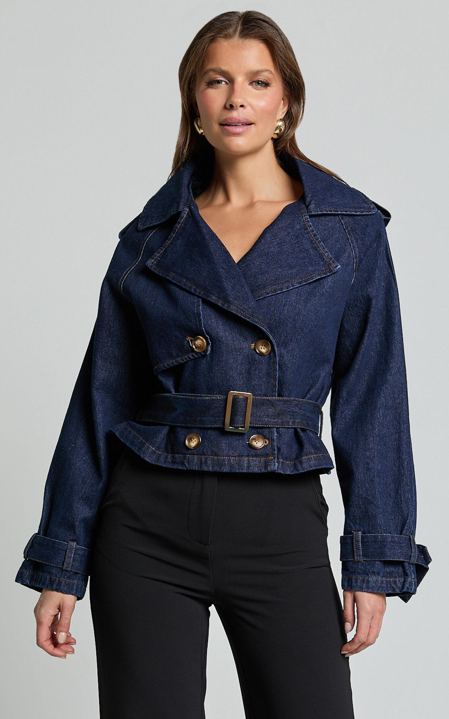 Discover the perfect look in our Gabrielle Trench Coat - effortlessly bridges the gap between casual chic and party-ready glam. This tie waist cropped denim coat in a striking indigo hue is more than just a piece of clothing; it's a style statement waiting to elevate your wardrobe.Product Details:Buttons detailDenim fabricLong sleeveCrop lengthCotton materialCasual, Party Day useMaterial and Care100% CottonLow / No stretchNatural FibresThe main fabric of this product is made from 100% Natural Fibres. Whilst some of these fibres still have detrimental impacts in their supply chain, Natural Fibres have a reduced overall impact compared to a raw polyester.