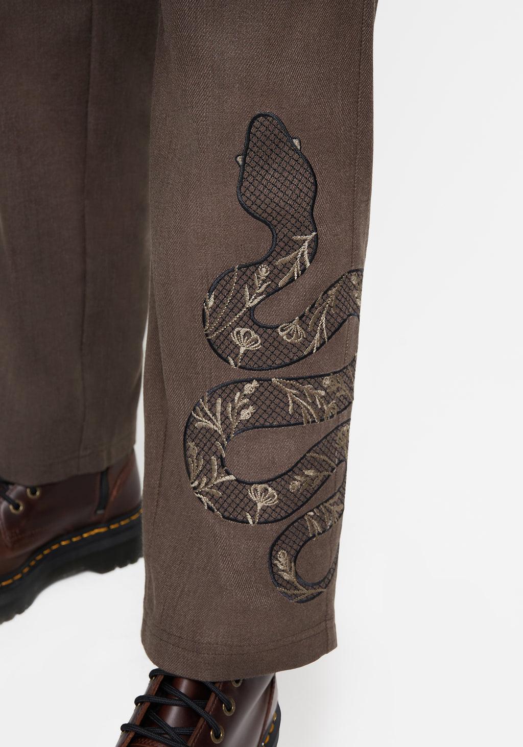 Gaia Linen Blend Snake Embroidered Wide Leg Trouser