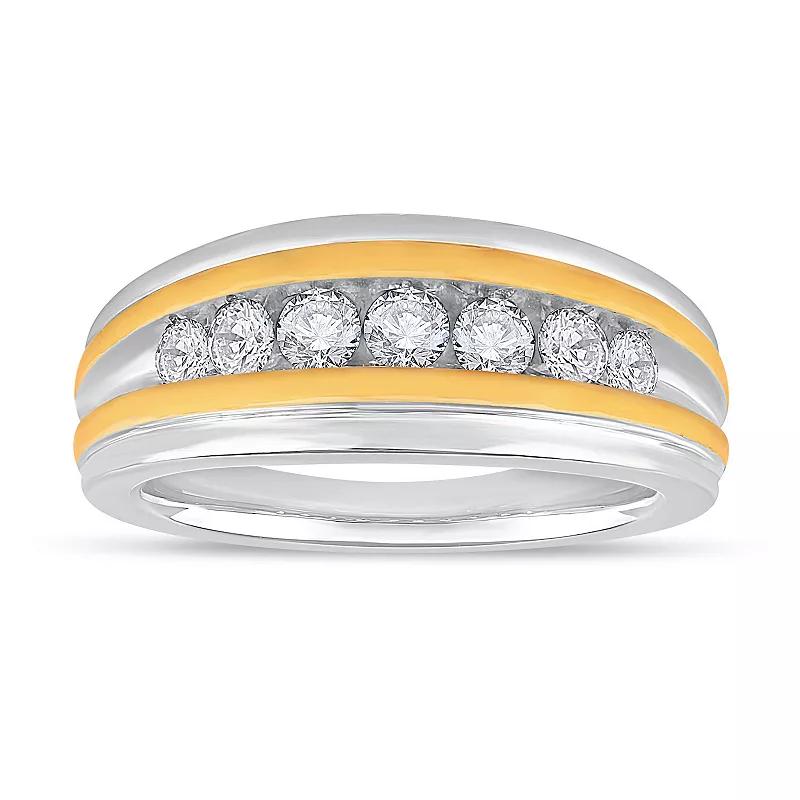 Complete his ensemble with this Galaxie Solaire 10k gold two tone 1/2 carat T.W. lab-grown diamond mens ring. Click on this JEWELRY & WATCHES GUIDE to learn about fit, styles, materials and more! BENEFITS OF LAB-GROWN DIAMONDS Offer essentially the same physical, chemical and optical properties as mined diamondsLab-grown diamonds are larger, and offer a higher quality than mined diamonds of the same price Each stone is conflict-free Complete his ensemble with this Galaxie Solaire 10k gold two tone 1/2 carat T.W. lab-grown diamond mens ring. Click on this JEWELRY & WATCHES GUIDE to learn about fit, styles, materials and more! BENEFITS OF LAB-GROWN DIAMONDS Offer essentially the same physical, chemical and optical properties as mined diamonds Lab-grown diamonds are larger, and offer a higher quality than mined diamonds of the same price Each stone is conflict-free FEATURES Width: 8.9 mm Band fit: comfort fit Metal: 10k gold, 10k white gold Plating: rhodium Finish: polished Packaging: boxedLAB-GROWN DIAMOND DETAILS Total weight: 1/2 ct. Color grade: H Clarity: SI2 Shape: round Setting: nick Gemstones may have been treated to enhance their appearance. Special care may be required. Please visit our Gemstone Treatment & Special Care Guide for more information. Diamond weights are approximate. Diamond Total Weights may vary between .01 and .13 ct. Some diamonds consist of fewer than 17 facets. Image(s) may be enlarged to show detail. Size: 11. Color: 10k 2 Tone. Gender: male. Age Group: adult.