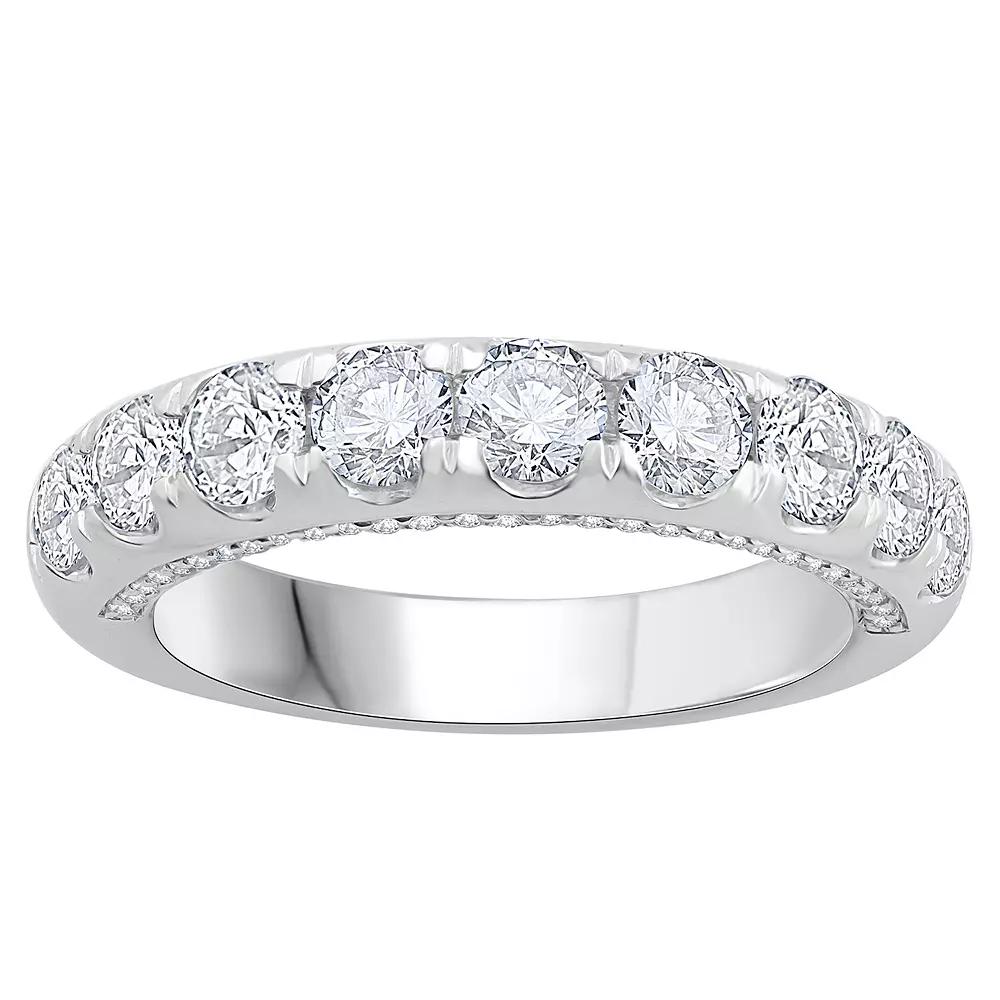 Show your true love and devotion with this gorgeous Diamond Medley 14k White Gold 1 7/8 Carat T.W. Lab-Grown Diamond Anniversary Ring. Click on this JEWELRY & WATCHES GUIDE to learn about fit, styles, materials and more! Show your true love and devotion with this gorgeous Diamond Medley 14k White Gold 1 7/8 Carat T.W. Lab-Grown Diamond Anniversary Ring. Click on this JEWELRY & WATCHES GUIDE to learn about fit, styles, materials and more! BENEFITS OF LAB-GROWN DIAMONDS Offer essentially the same physical, chemical and optical properties as mined diamonds. Lab-grown diamonds are larger, and offer a higher quality than mined diamonds of the same price. Each stone is conflict-free.FEATURES Width: 4.4 mm Size 7 Shank style: straight Band fit: comfort fit Metal: 14k white gold Plating: rhodium Finish: polished Packaging: boxedDIAMOND DETAILS Total weight: 1 7/8 ct. Color grade: I Clarity: SI Shape: round Setting: micro prong, pave Gemstones may have been treated to enhance their appearance. Special care may be required. Please visit our Gemstone Treatment & Special Care Guide for more information. Diamond weights are approximate. Diamond Total Weights may vary between .01 and .13 ct. Some diamonds consist of fewer than 17 facets. Diamond equivalent carat (ct.) Total Weight (T.W.) represents the approximate total weight of diamonds of equivalent appearance. Image(s) may be enlarged to show detail. Please note, due to the high value of this item, a signature may be required upon delivery. Gender: female. Age Group: adult.