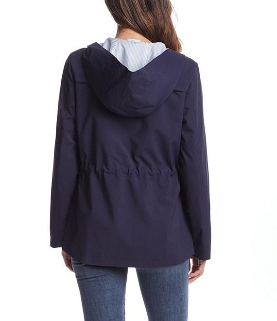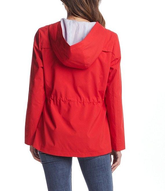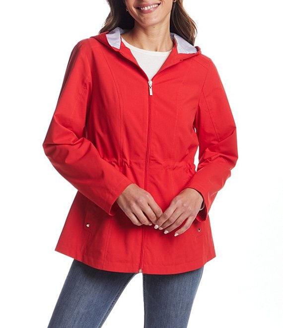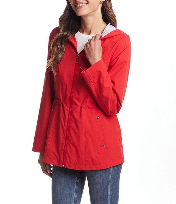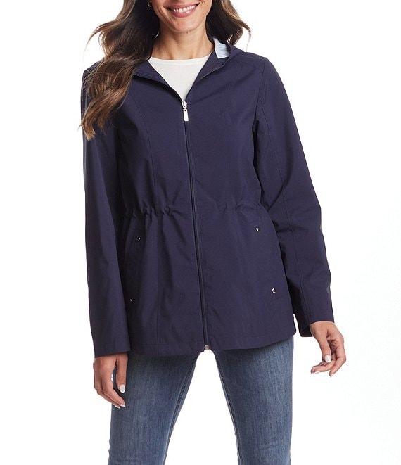From Gallery, this jacket features: A-line silhouette Stand collar neckline Long sleeves Water resistance Side pockets Packable rain jacket Mid weight Fully lined Straight hemline Front zip closure Approx. 29" length Polyester; lining: polyester Machine wash/tumble dry Imported.