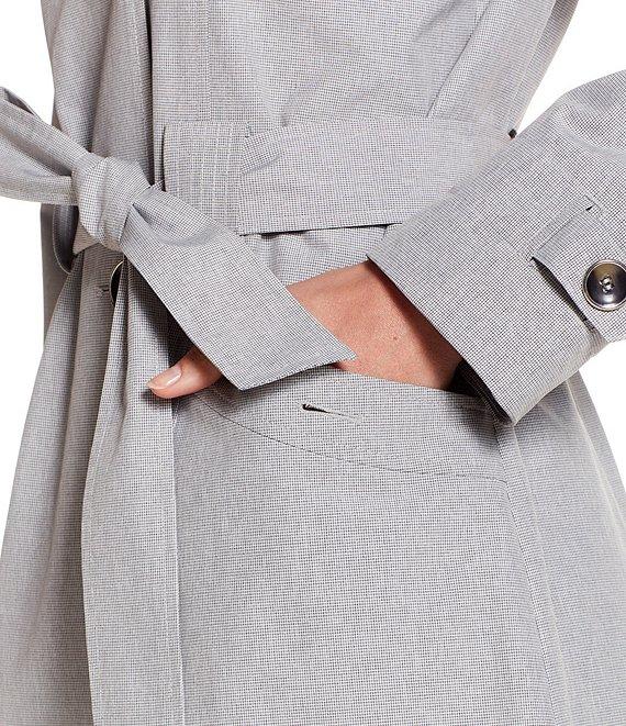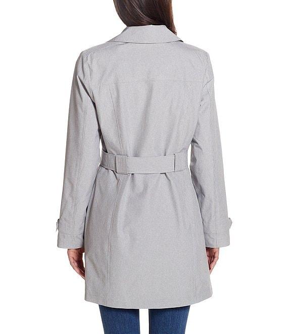 From Gallery, this coat features: A-line wrap silhouette Notch collar Long sleeves Belted Side entry pockets Button front closure Straight hemline Water resistant Mid weight Approx. 30.5" length Shell: polyester Lining: polyester Machine wash/tumble dry Imported.