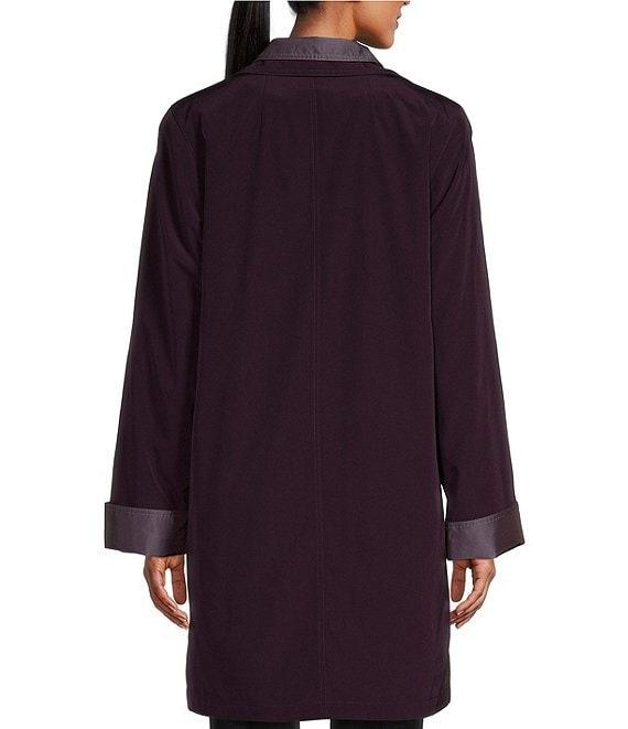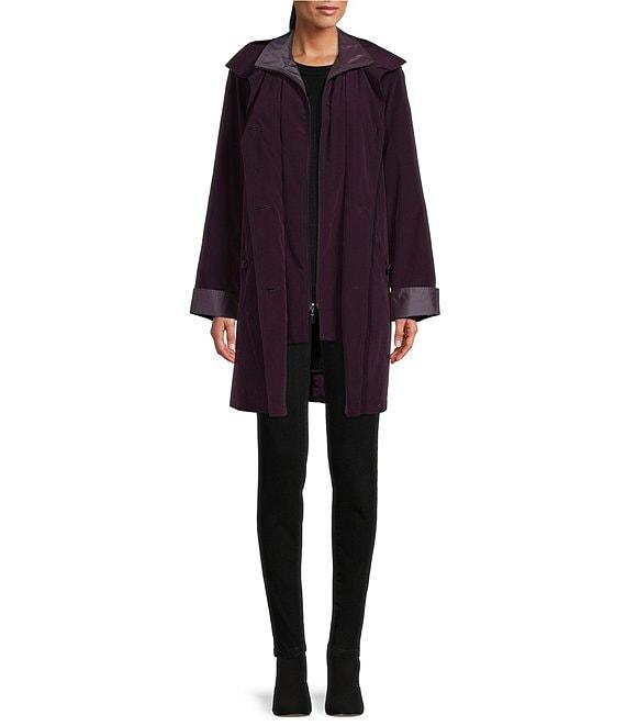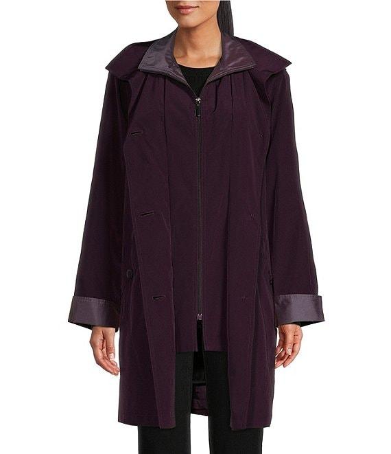 From Gallery, this coat features: Water resistant fabrication Stand collar Set-in sleeves Side entry pockets Detachable hood Interior silk bib Detachable acrylic liner Straight hemline Zip and button front closure Approx. 36.5" length Polyester Machine wash/tumble dry Imported.