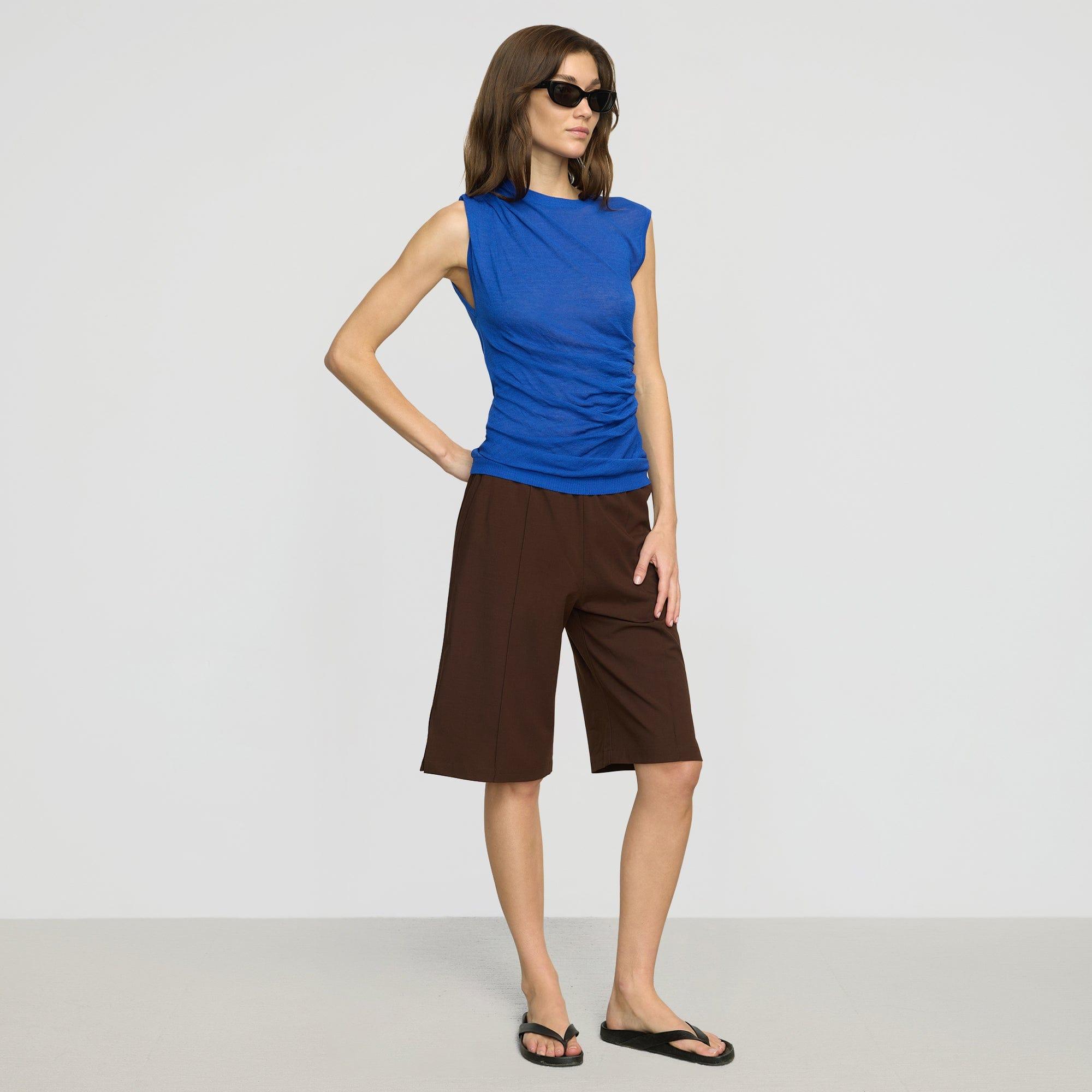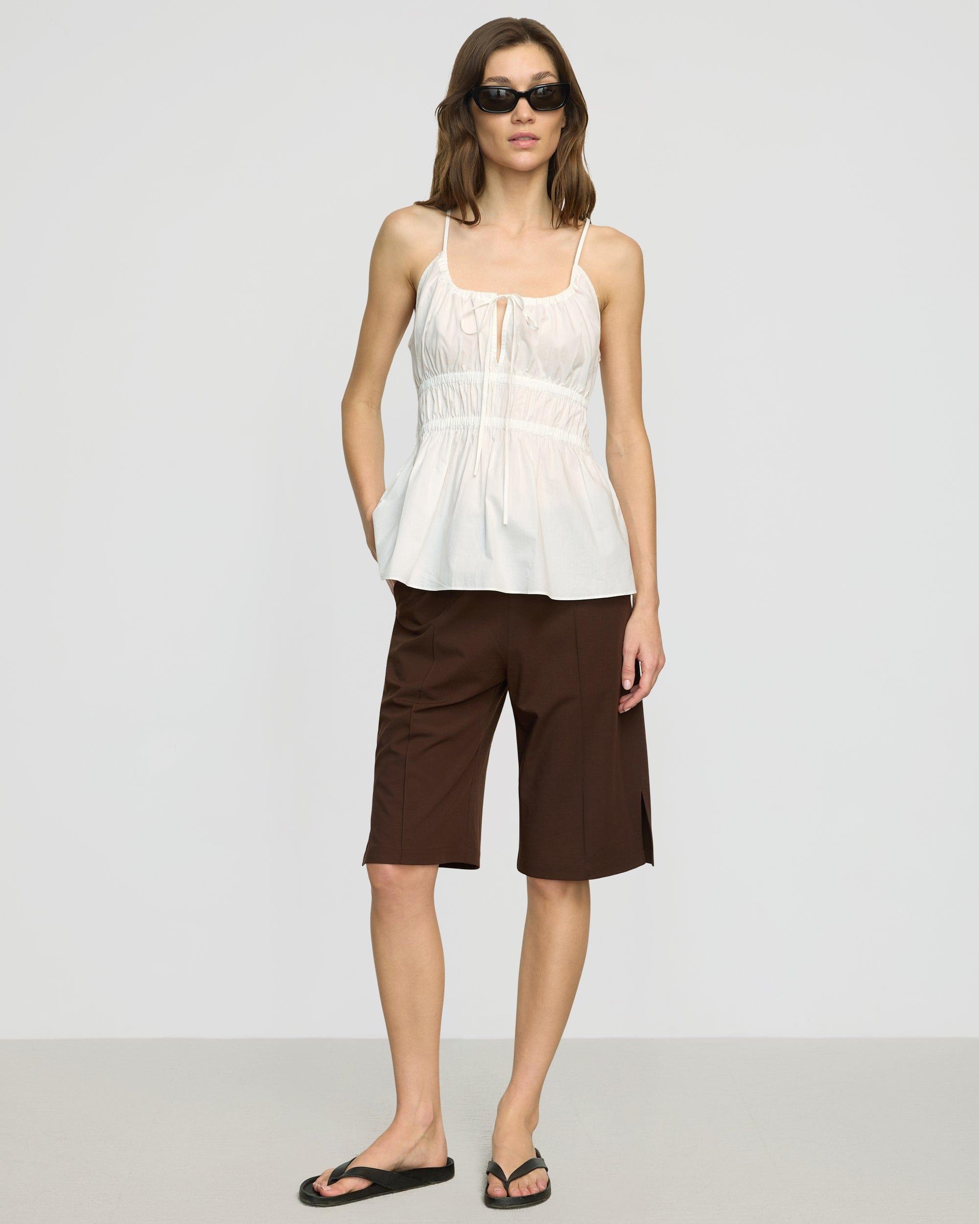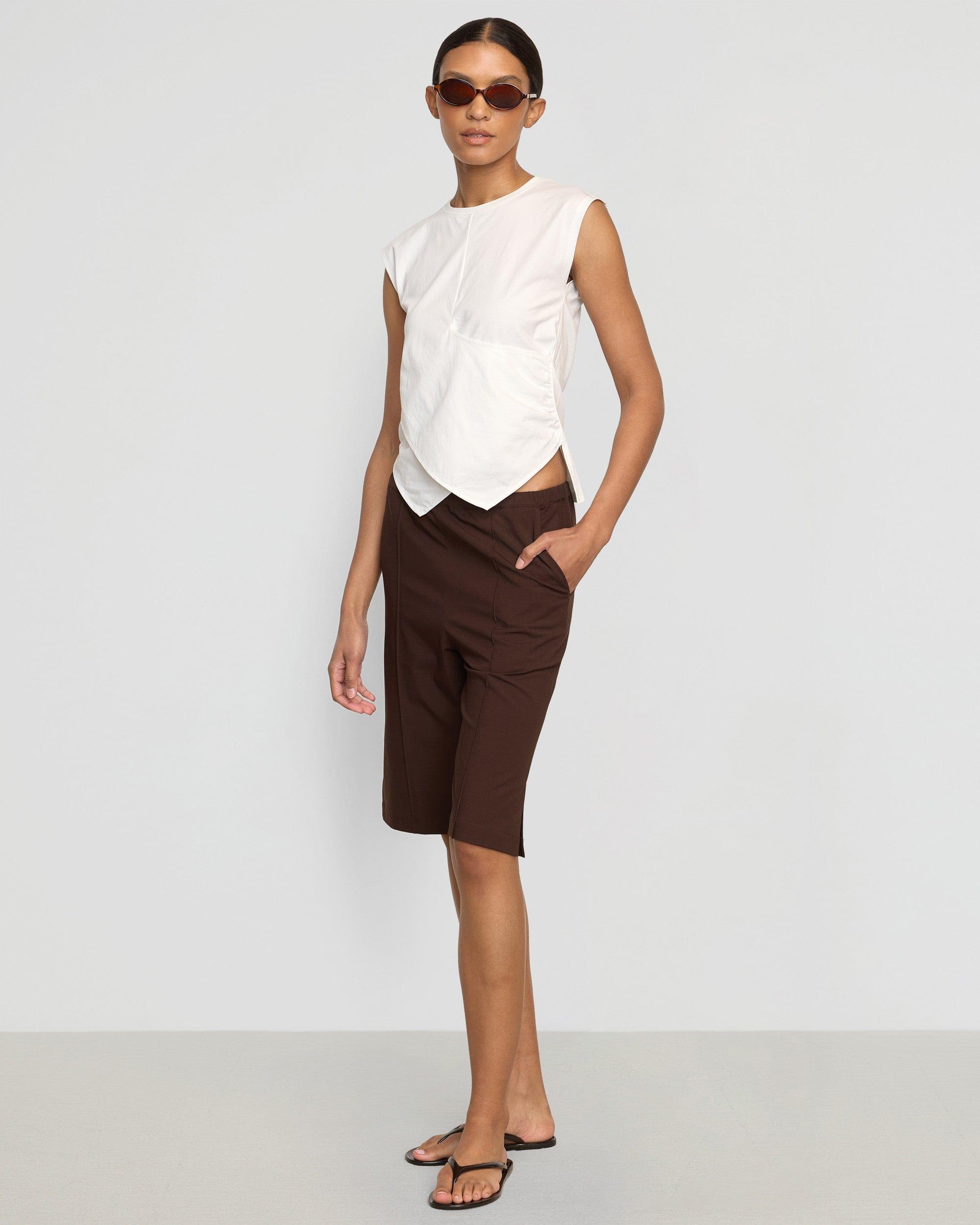 Effortlessly chic and easy for any occasion — Gallia is a slim-fit, pull-on Bermuda short with a thin elastic waistband, design forward seam detailing, and functional pockets.