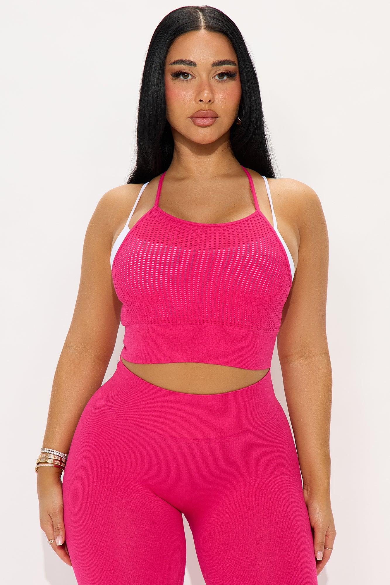 Available In Black/combo And Fuchsia/combo. Active Set Sports Bra Scoop Neck Sleeveless Active Legging High Waisted Elastic Waistband Seamless Twofer Low Impact Stretch Self: 92% Nylon 8% Spandex Imported California Proposition 65 WARNING: Cancer and Reproductive Harm - www.P65Warnings.ca.gov.