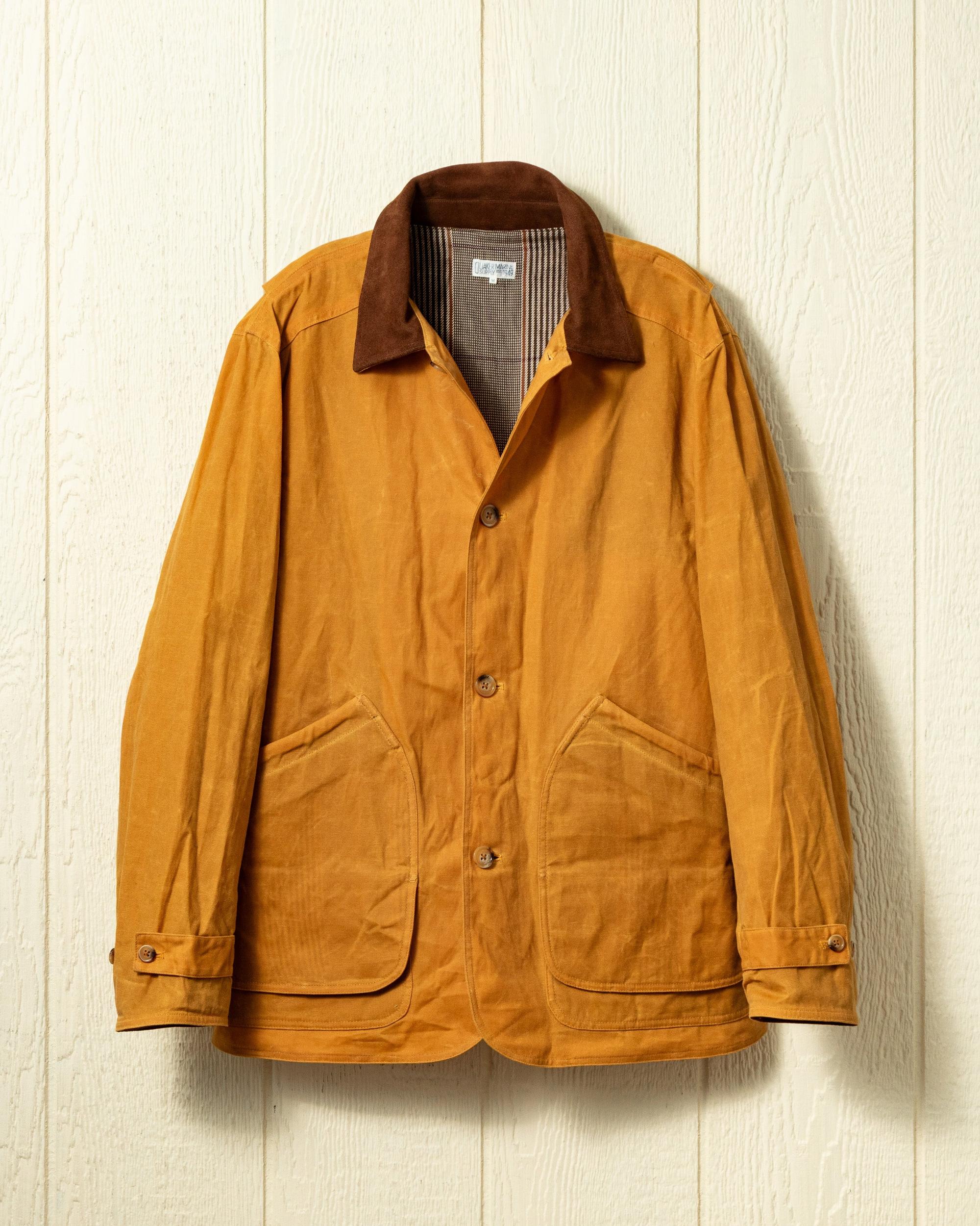 This classic Gamekeeper Jacket is an effortlessly cool workhorse built to stand the test of time. It is constructed with a durable heavyweight waxed cotton canvas, and is trimmed with real suede. It features two deep front pockets that flip up to reveal additional pockets beneath. The traditional fit is meant to accommodate layers, and the shoulders are gusseted at the back to allow for total range of motion.