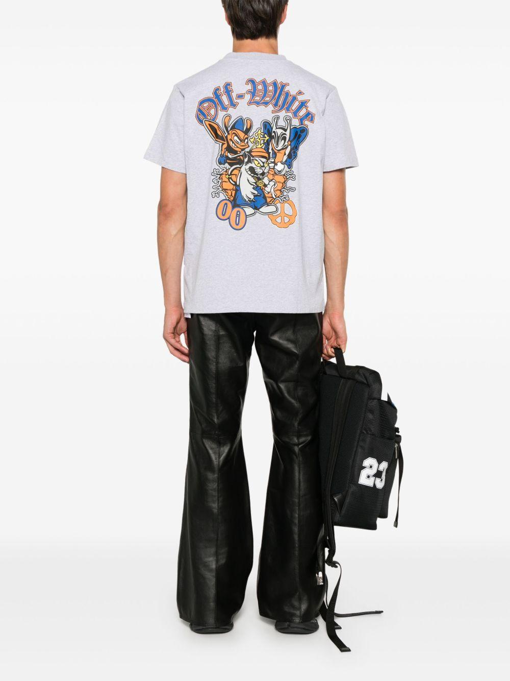 Off-White Gang T-shirt | Grey | light grey | cotton | lightweight jersey | mélange effect | crew neck | short sleeves | cartoon print to the chest | logo print to the rear | Gang-print to the rear | straight hem | Cotton | T-Shirts | T-Shirts & Vests | Clothing | Men