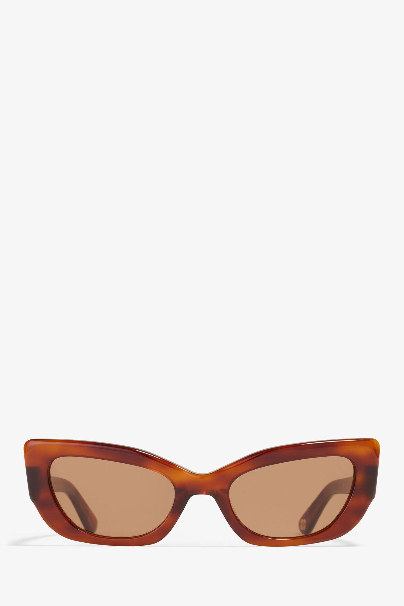 These Sadie Sunglasses are designed in a rectangular cat-eye shape and feature a brown frame, tone-in-tone lenses, logo detailing on the temples and middle endpieces.