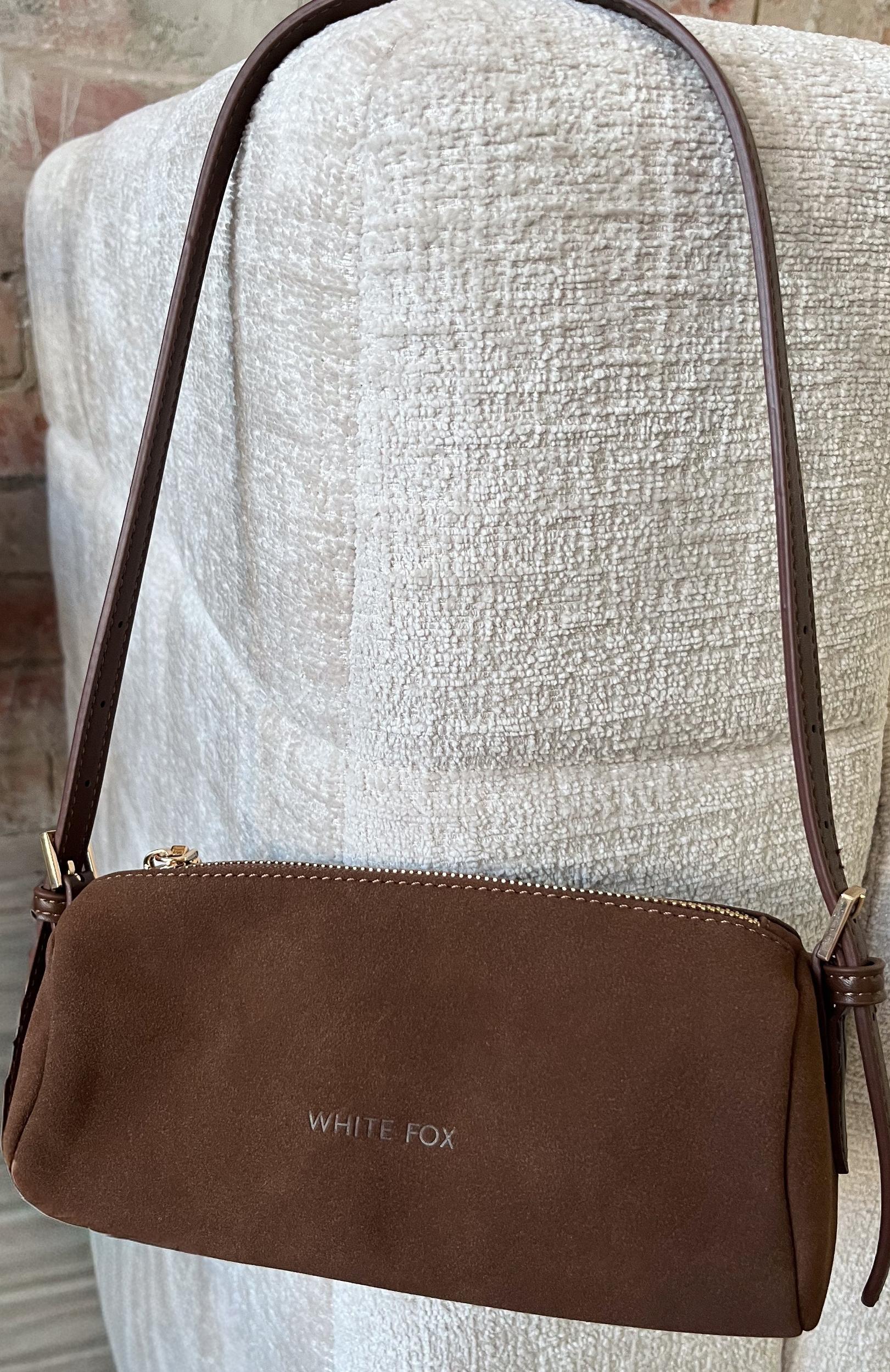 No fit is finished without the Gannon Shoulder Bag in Chocolate Faux Suede. Features a sleek elongated silhouette with thin shoulder straps, secure zipper closure and adjustable buckle detailing. Embossed White Fox text at the centre front adds subtle branding. Crafted from bone-toned faux suede, it brings texture and polish to any look. Pair with a mini dress, belt and boots for a cool, complete fit.