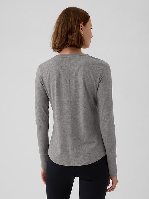 Soft, lightweight T-shirt. Crewneck. Long sleeves. Moisture-wicking helps keep your skin dry. This product was made in a factory that invests in gender equality and women’s empowerment. Through RISE (Reimagining Industry to Support Equality) and Gap Inc.’s program P.A.C.E. (Personal Advancement & Career Enhancement), we support people who make our clothes to build the skills, knowledge, confidence, and resilience needed to advance in work and life. Learn more here. #522508