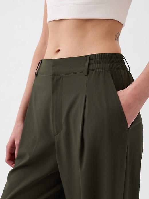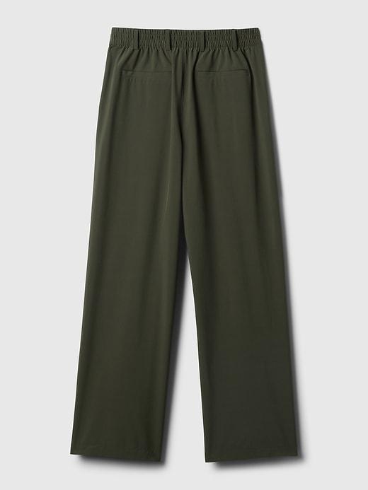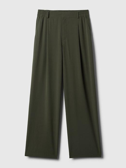 Soft, stretch woven lightweight trousers. Concealed hook and bar closure, zip fly. Front slant pockets, back welt pockets. Pleated at front. These pants are made with 86% recycled polyester. Less waste in the world. More great clothes for you. #875069