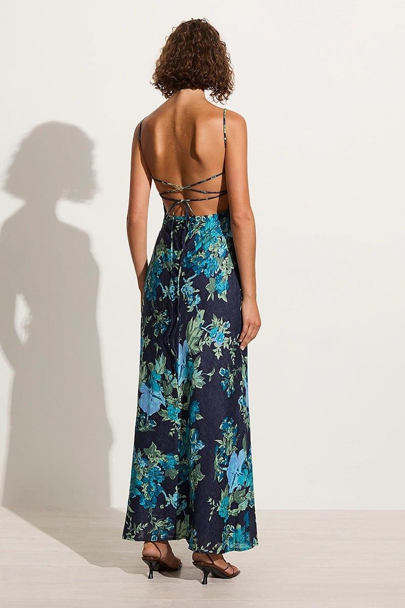 Be effortlessly event ready in the Garcia Maxi Dress in Escala Floral Navy. A feminine silhouette boasting a straight neckline, bias cut skirt, thin straps designed to be criss-crossed at the back and an angular low backline for a modern finish. Considerately cut from European Flax® linen boasting complete traceability and socially responsible standards, and hand-printed with statement blue florals throughout.