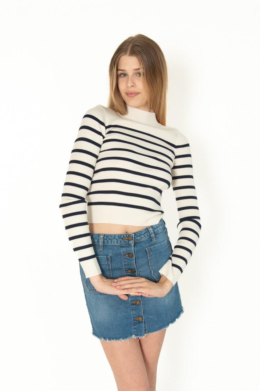 Gardenia Striped Mock Neck Sweater