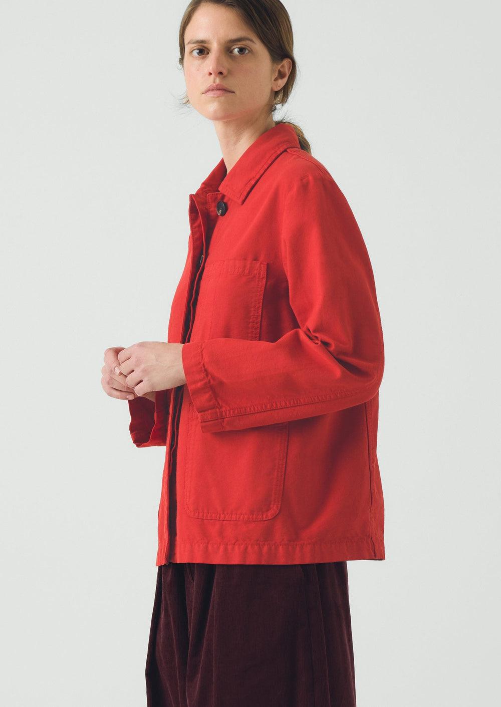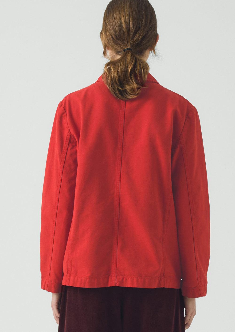 Our herringbone jacket is made from organic cotton canvas, with visible seams forming a panelled effect. With patch pockets and concealed horn buttons, garment-dyed for natural tonal variation.