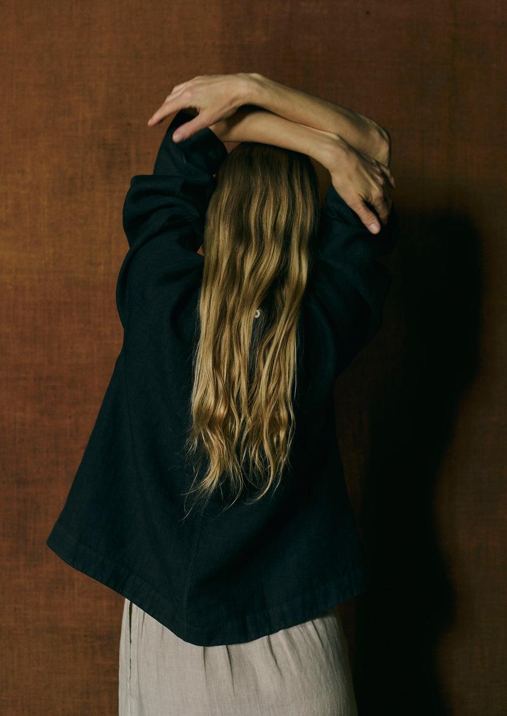 Garment Dyed Linen Top | Black Pepper