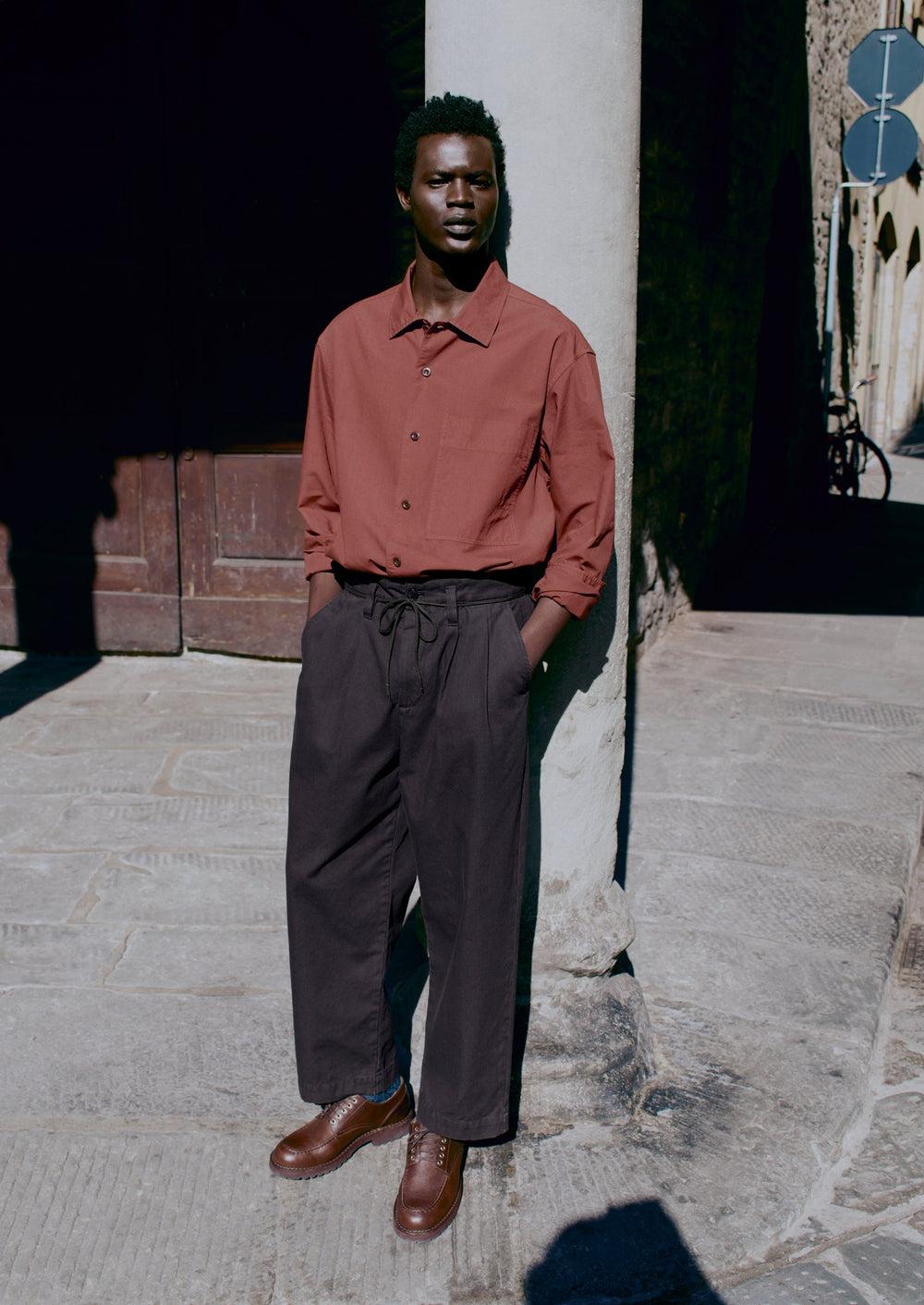 Cotton Oxford. Patch pocket. Corozo buttons. Garment-dyed.