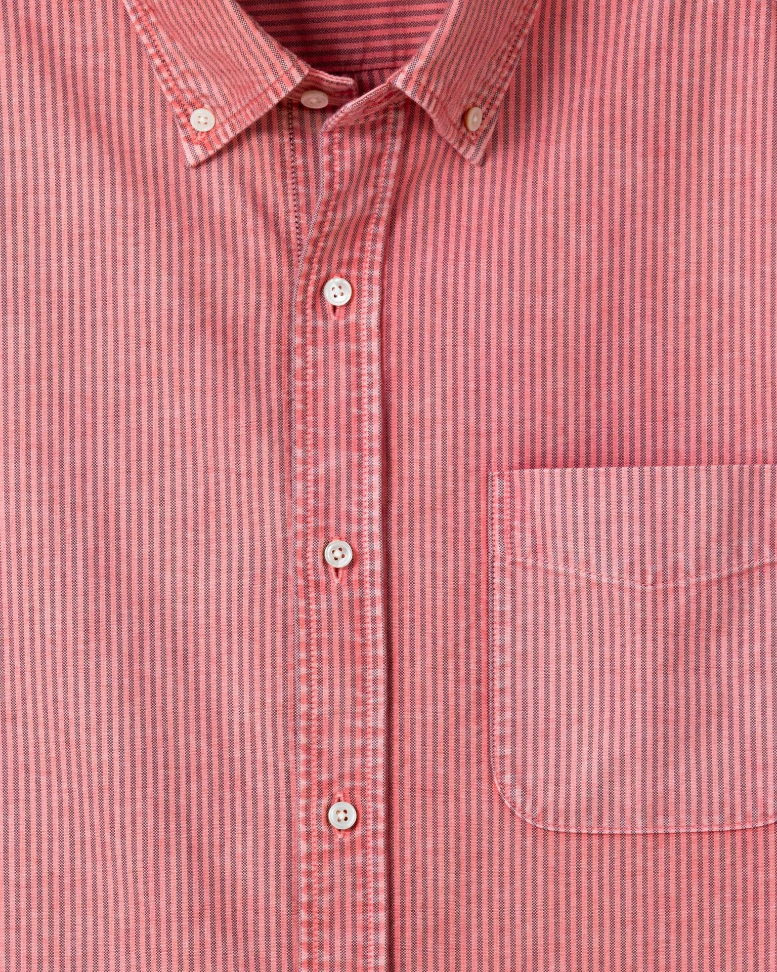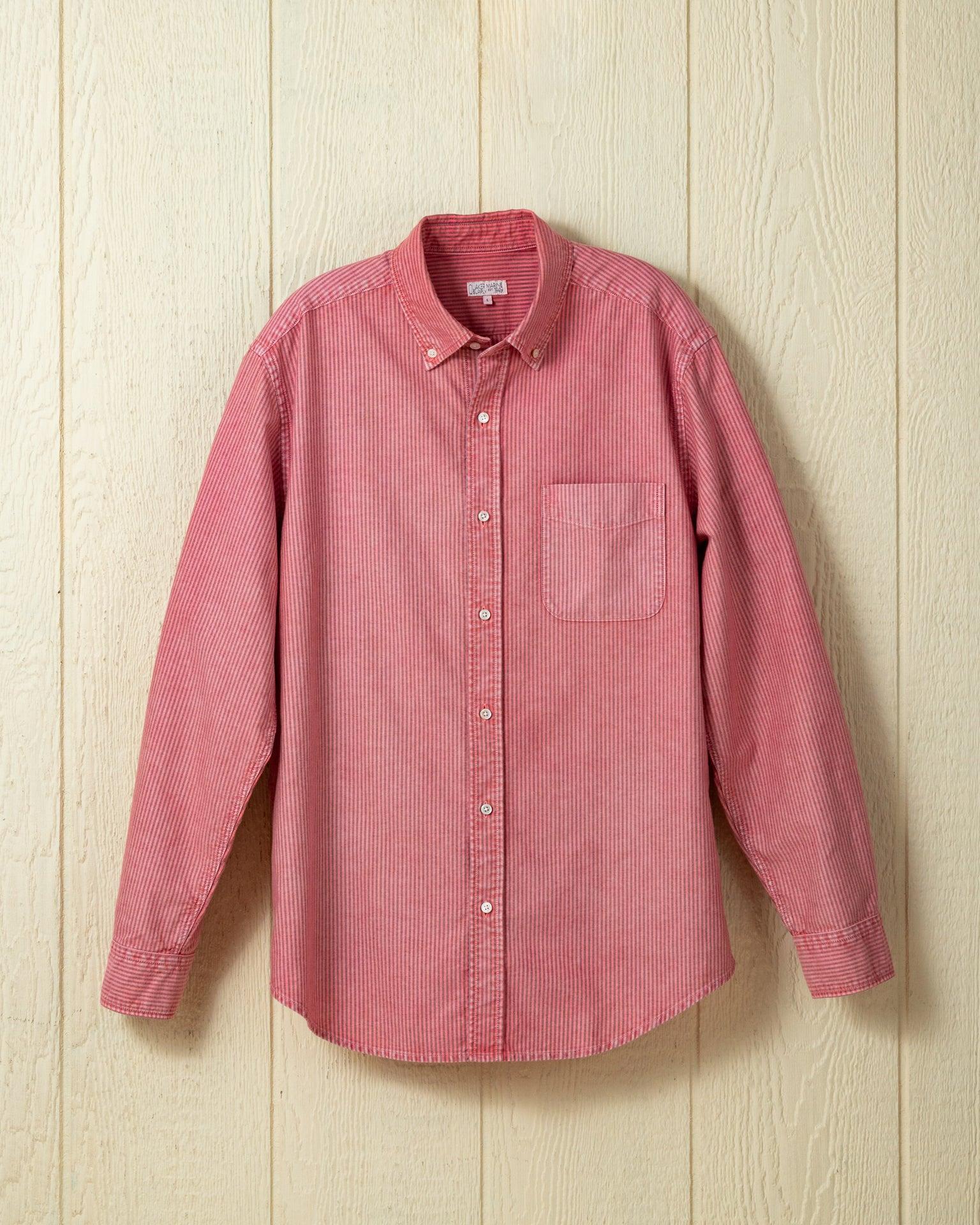 Garment Dyed Oxford Stripe Shirt in Faded Red
