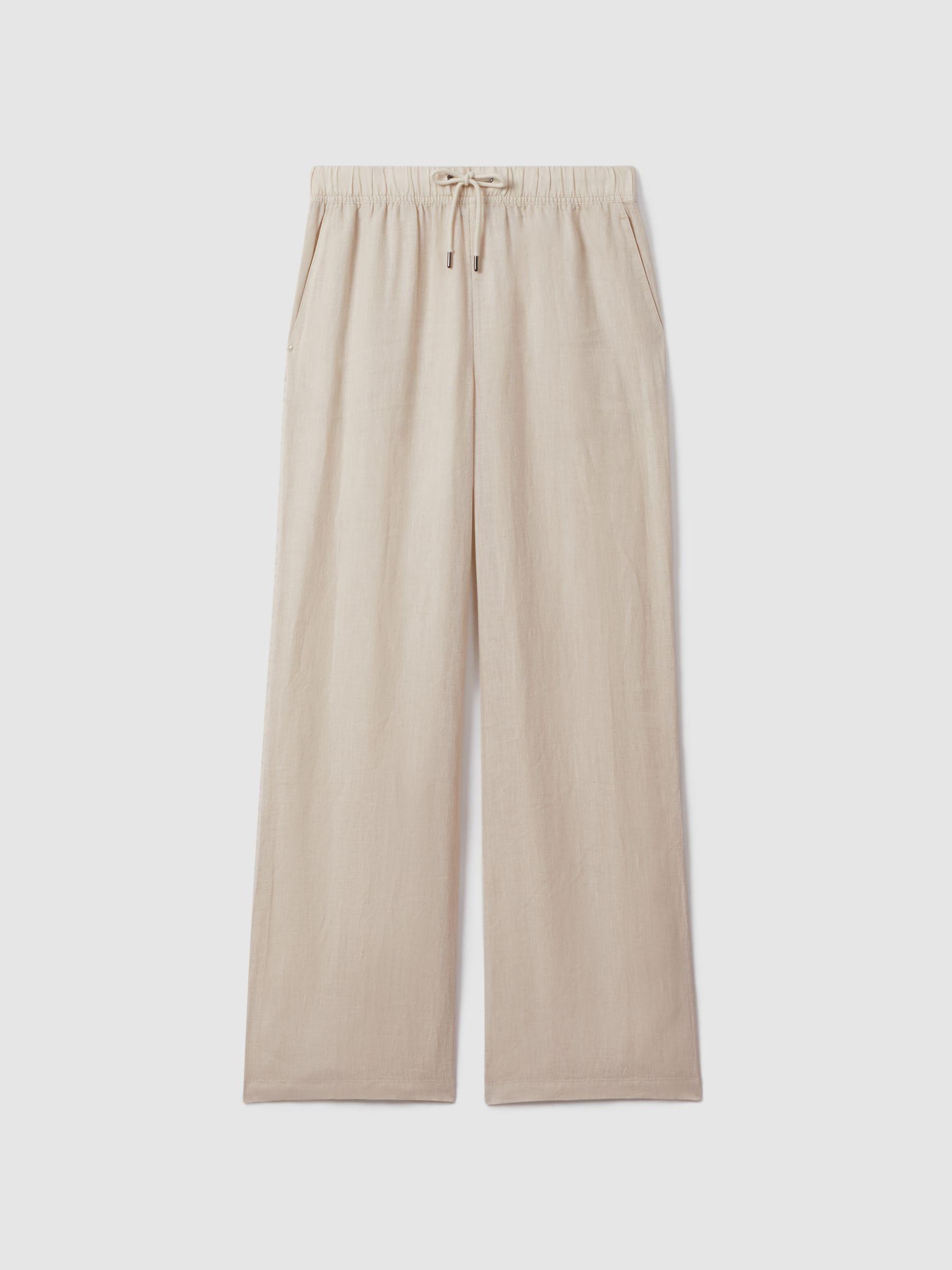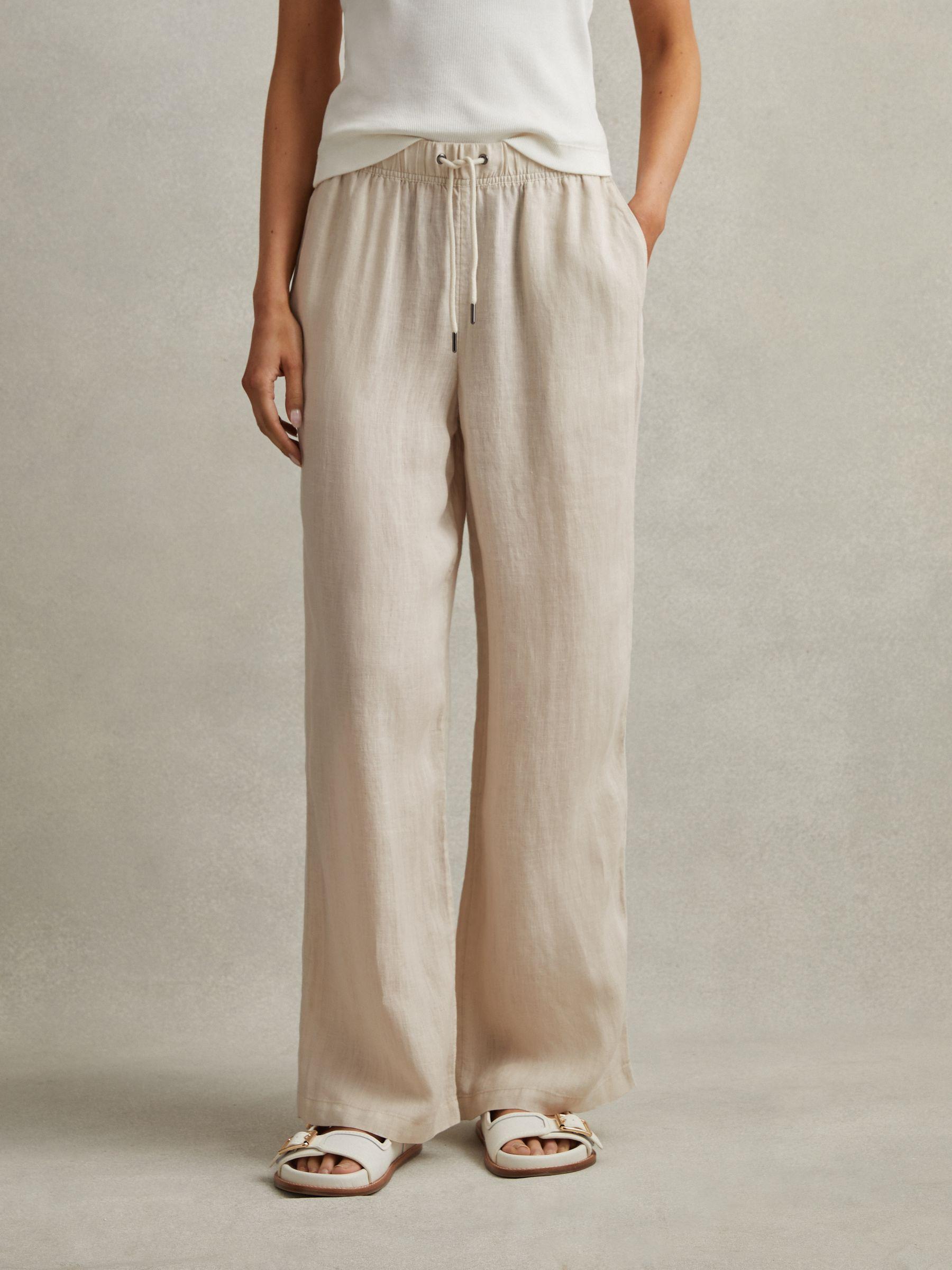 Made from garment-dyed linen, the Cleo trousers have a premium fluidity and softness. A drawstring waist and side pockets feature. Garment-dyed for a soft touch and an individual appearance. 100% linen. Drawstring waist. Side pockets. Wide leg. The model is wearing a size 8. Measurements of model: Height 5ft 10'' / 178cm.