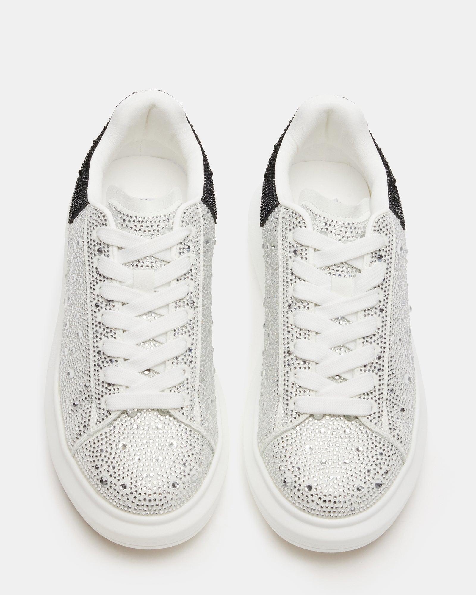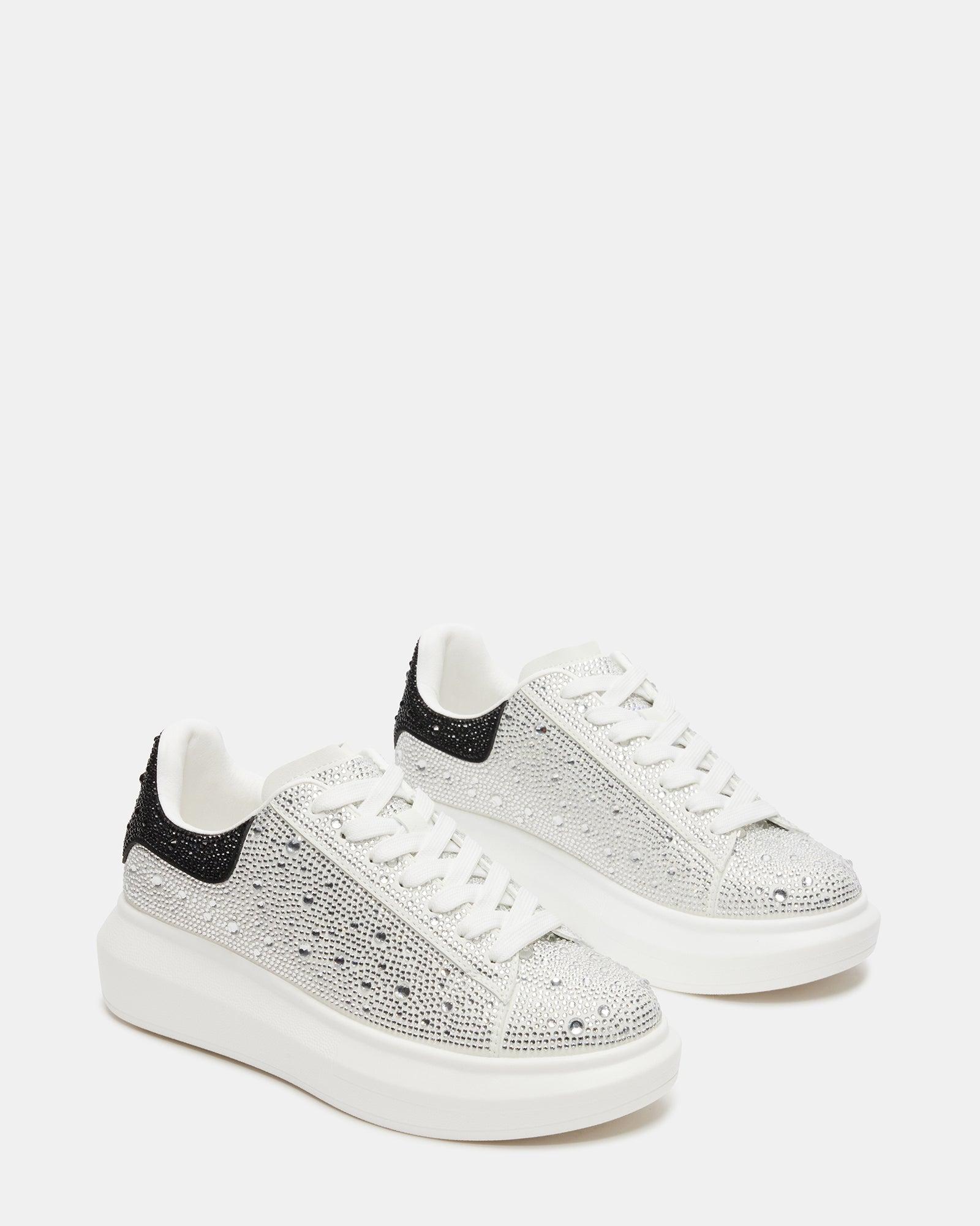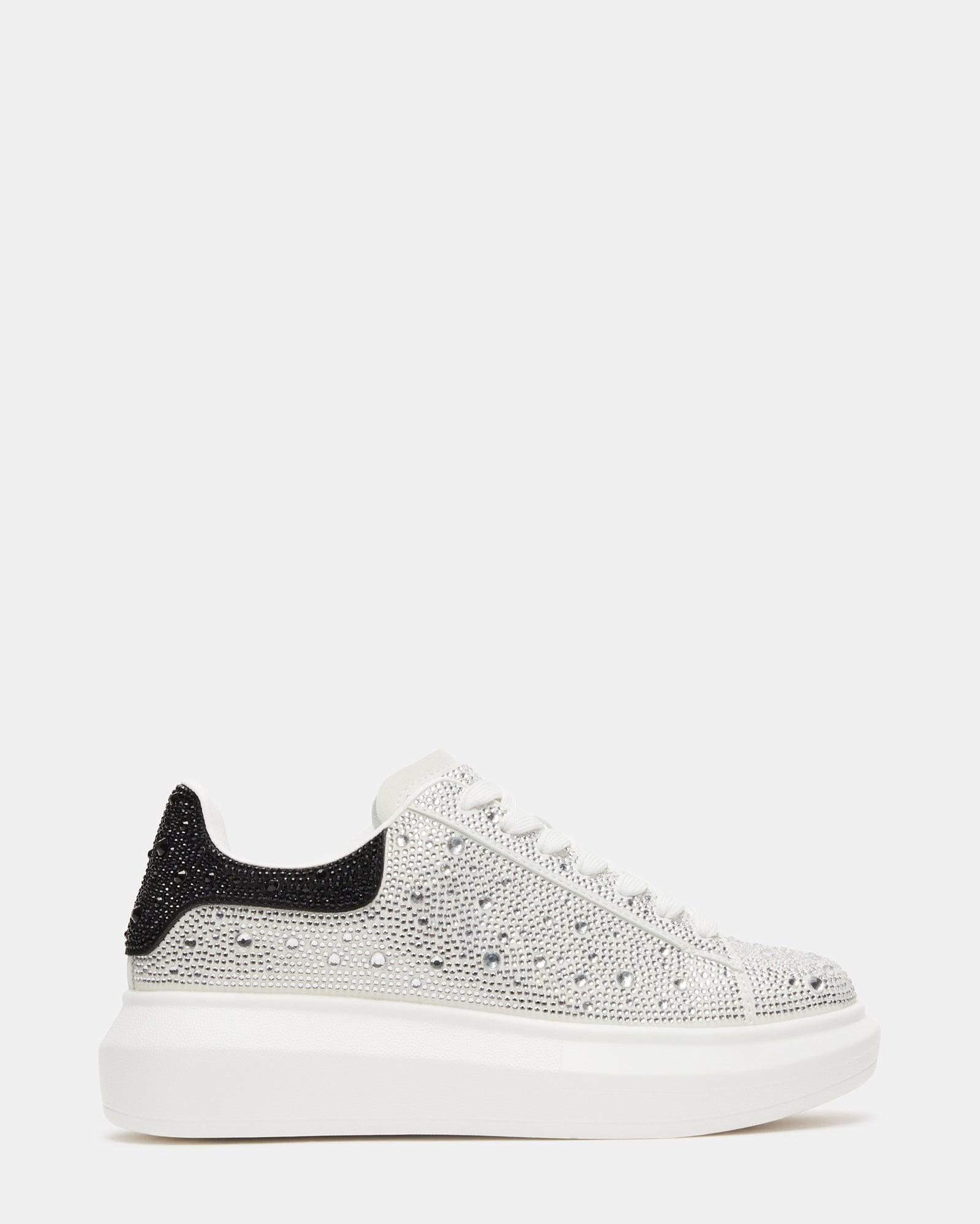 Add some sparkle to your step with GASP! These platform sneakers feature an eye-catching rhinestone detail and back tab contrast that will turn heads with every step. Lace them up and strut your stuff in style. 1.75 inch heel height Vegan leather upper material with rhinestones Vegan leather lining Vegan leather sock Synthetic sole Imported