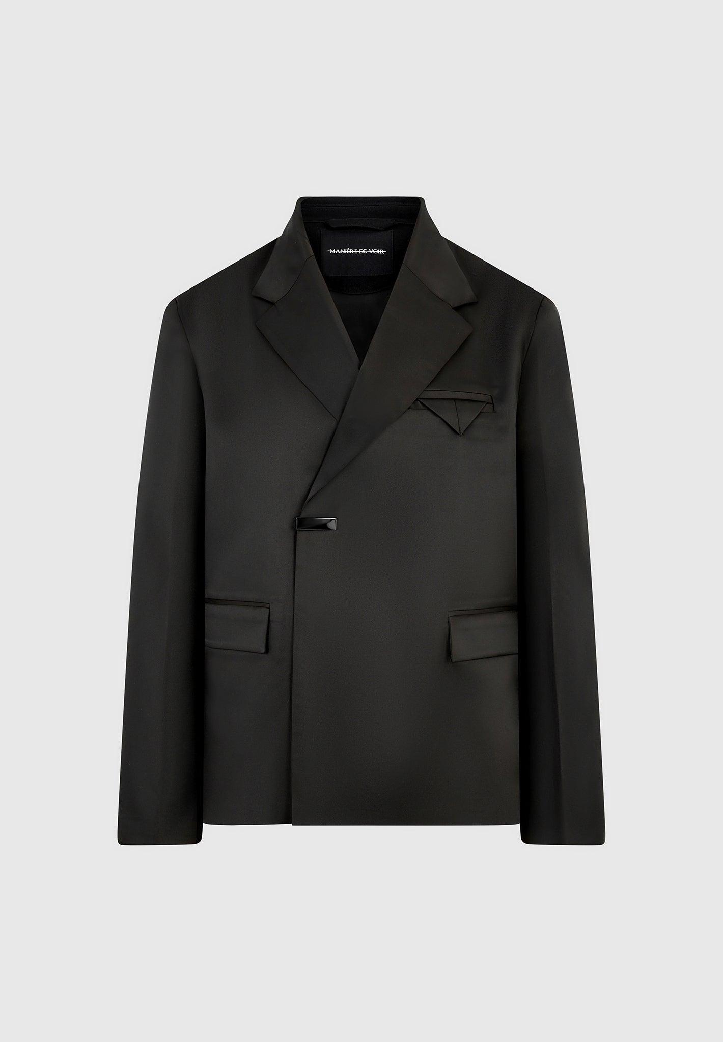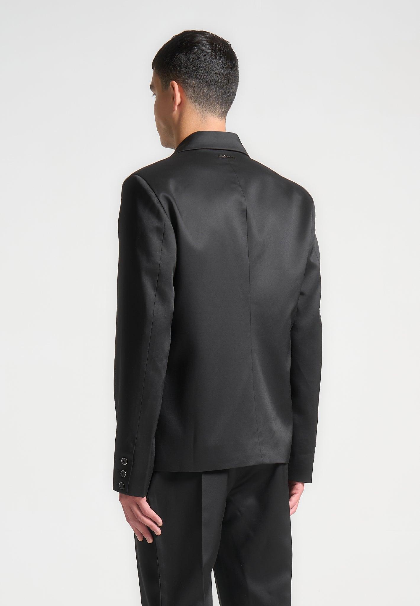 Gaston - Double Breasted Satin Suit Jacket - Black Male