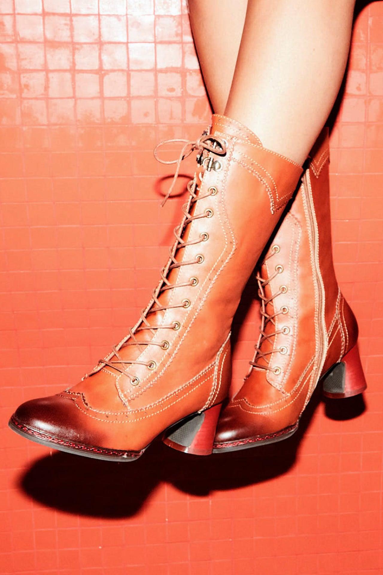 BE the beauty and the beast with these vintage inspired boots. Step in history with these vintage, retro inspired lace up GASTON boots, originally designed for high society women. Upper: Faux LeatherLeather liningZip closureHeel Height: 2" Block HeelFits 13" - 17" circumference