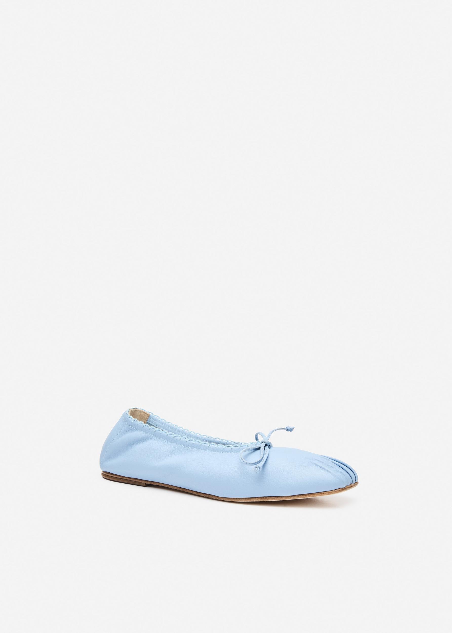 Gathered ballet flats in blue leather