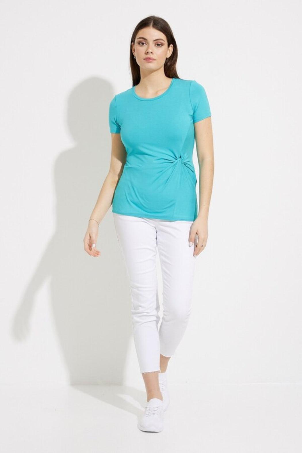 We're doing basics differently this season — just take this Joseph Ribkoff top for proof. The design features a rounded neckline and gathered front, creating a more flattering silhouette for your wardrobe. Easygoing never looked this good.