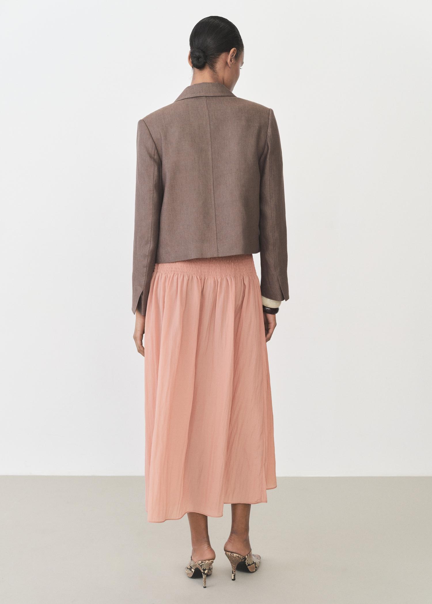 A-line design. Midi design. Elastic waistband. No closure. Side length 35.24 in. Skirt length 35.43 in