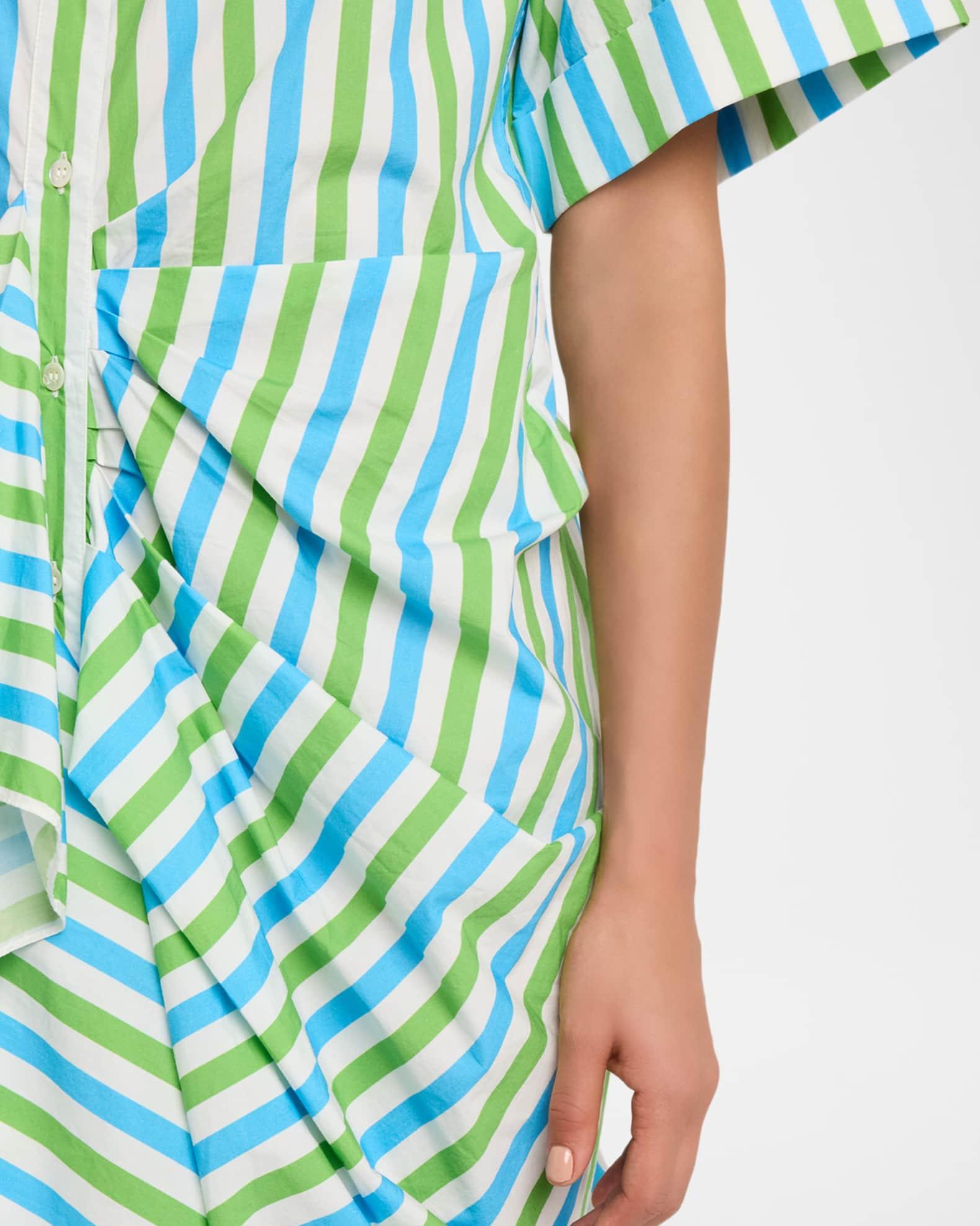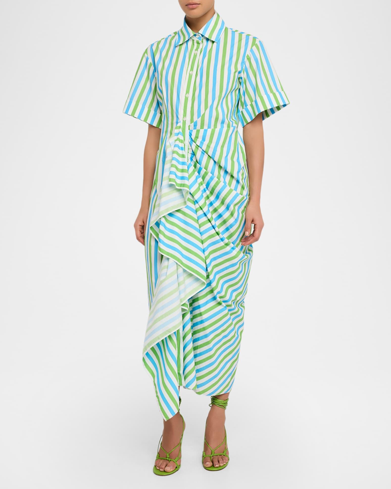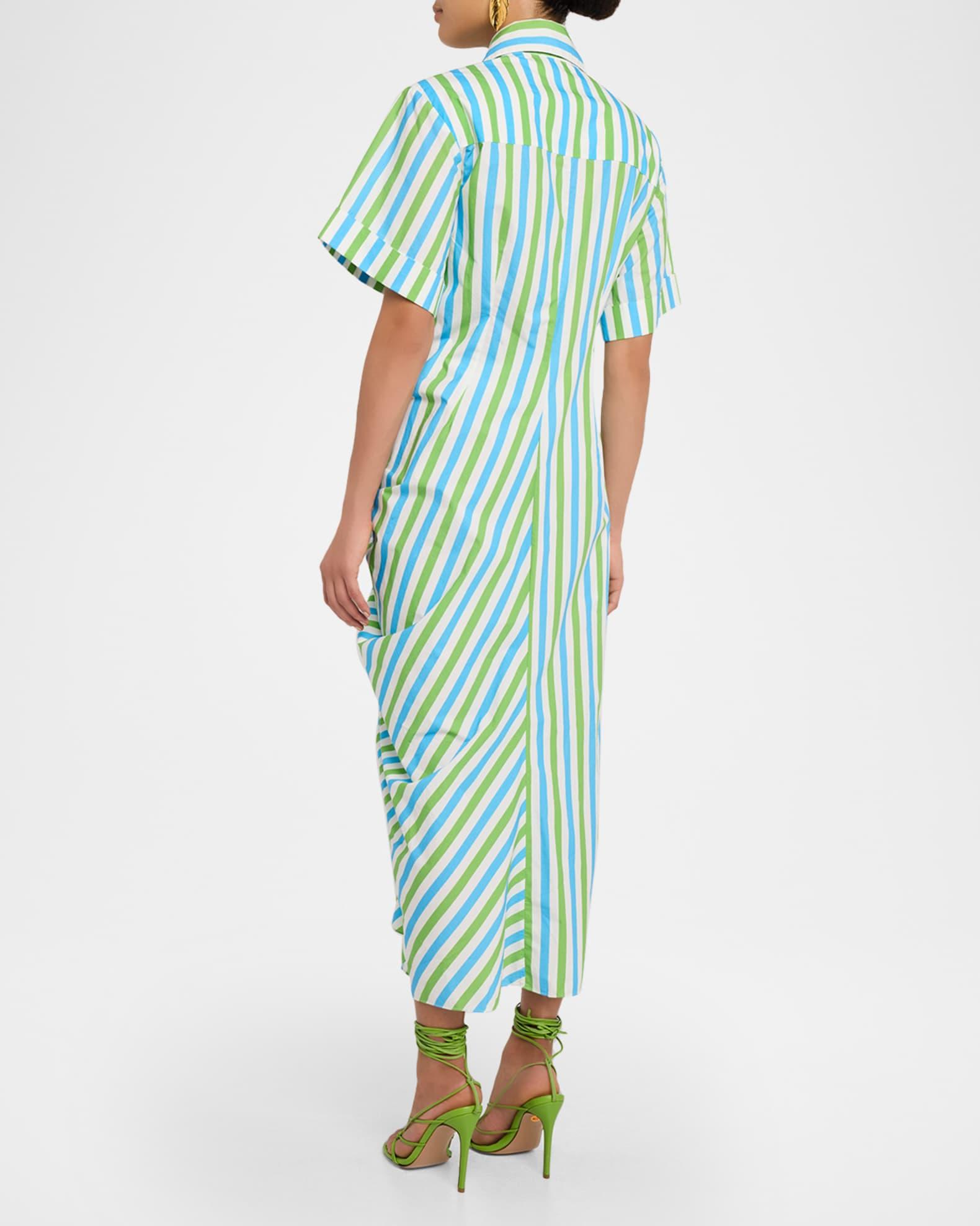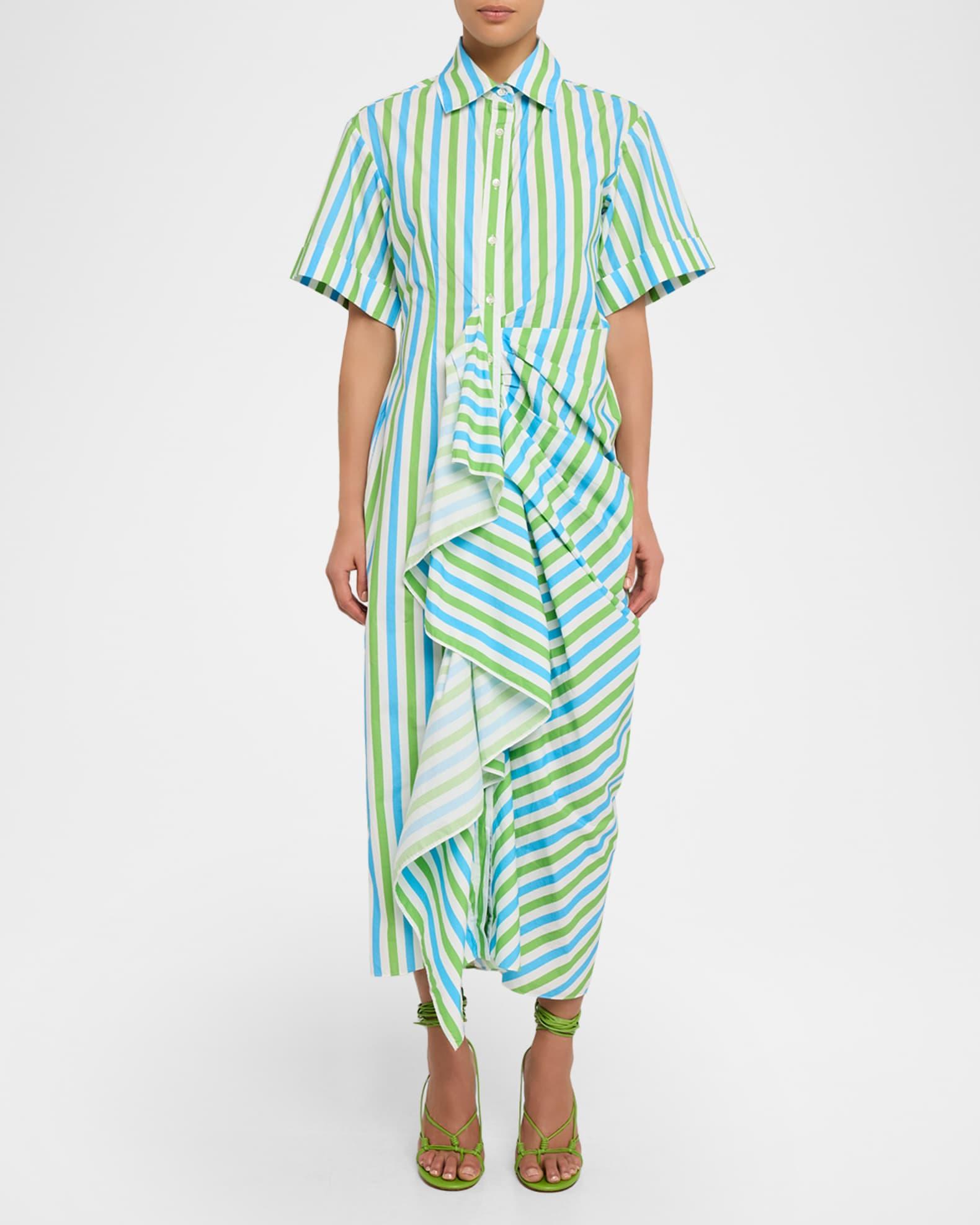 Gathered Ruffle Striped Maxi Shirtdress